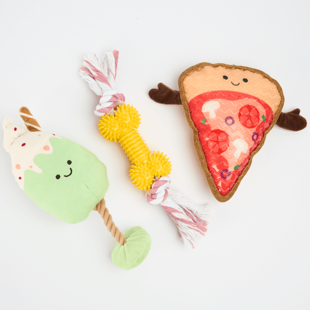 Paws for Life 3 Piece Gift Set Pizza Party Food Dog Toys
