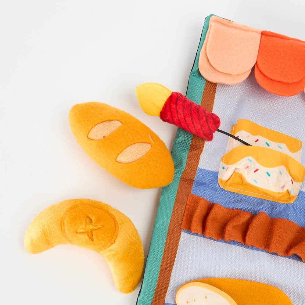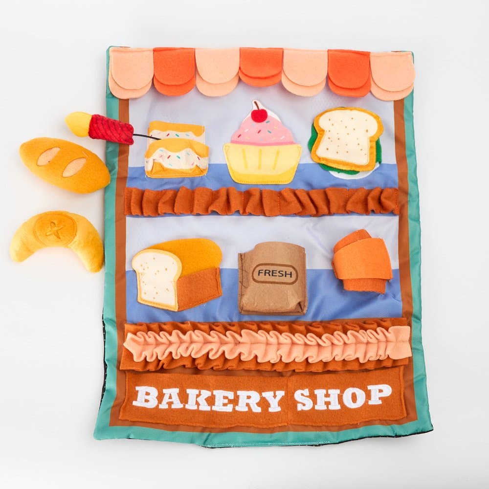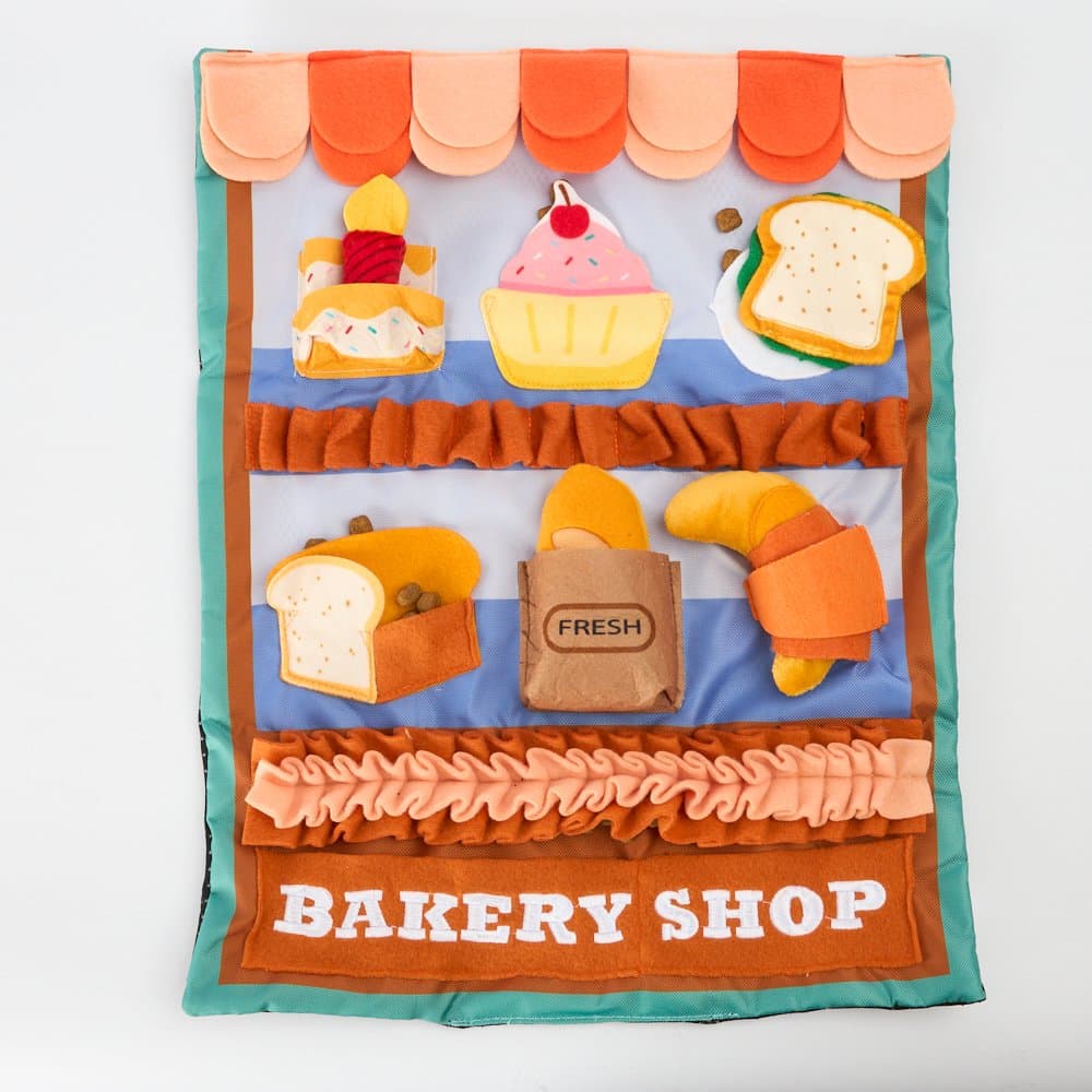 The Paws For Life Bakery Shop Interactive Snuffle Mat For Dogs turns mealtime into a delightful bakery treasure hunt, slowing down fast eaters while making them work for their treats.