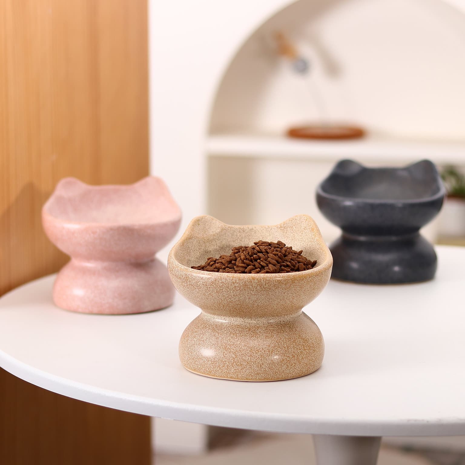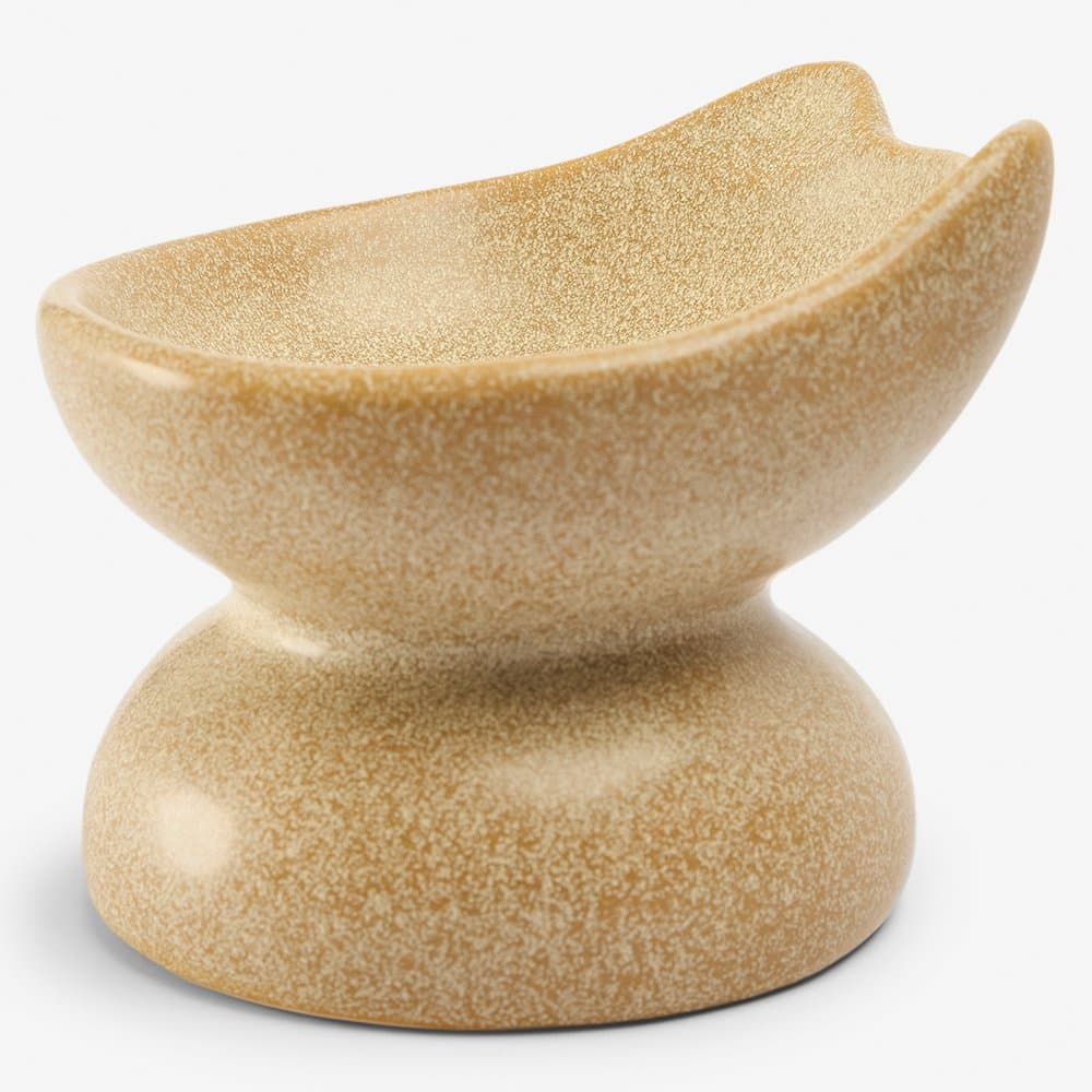 Paws for Life Cat Shaped Elevated Ceramic Pet Bowl in Natural Beige