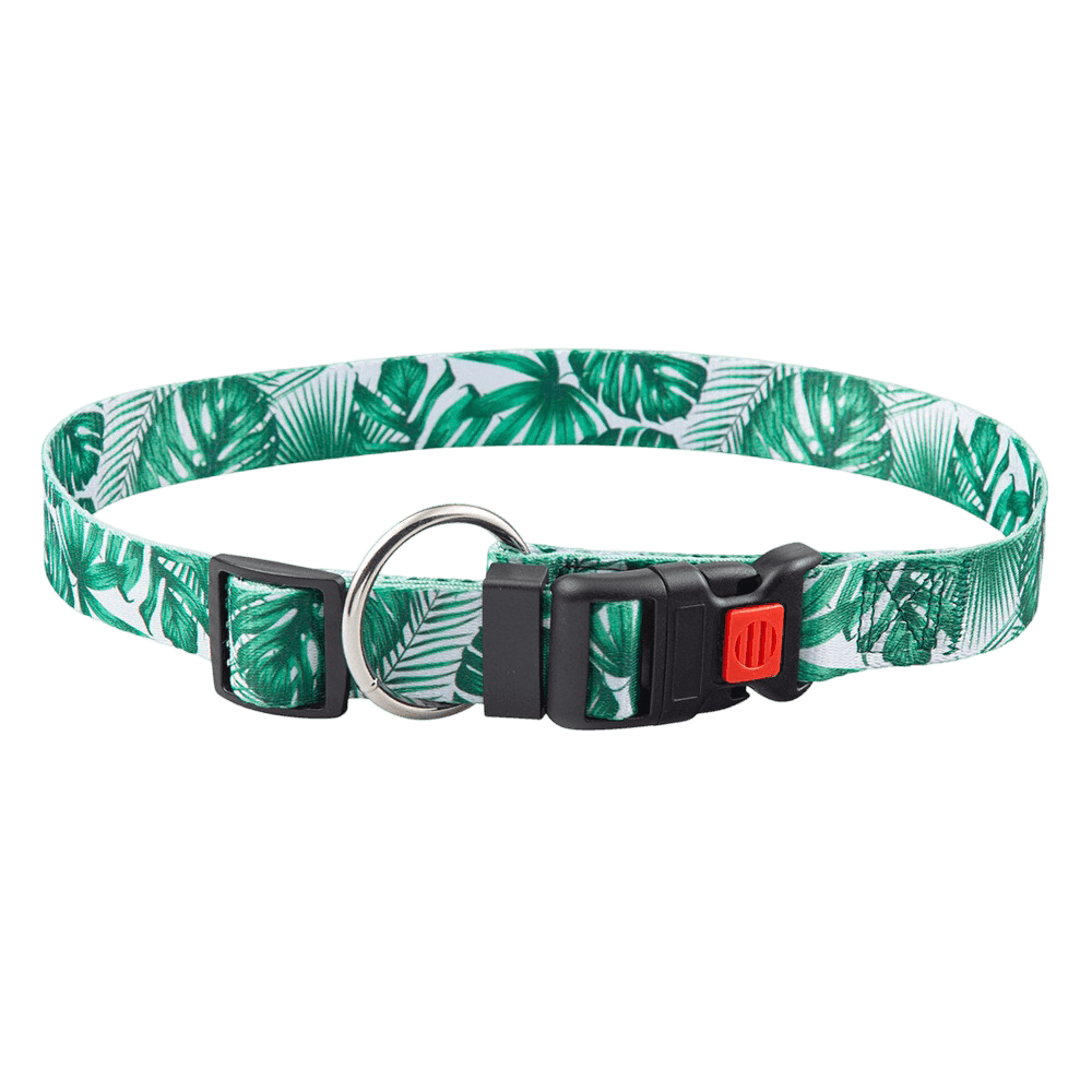 Paws for Life Green Palms Print Dog Collar with Snap Buckle