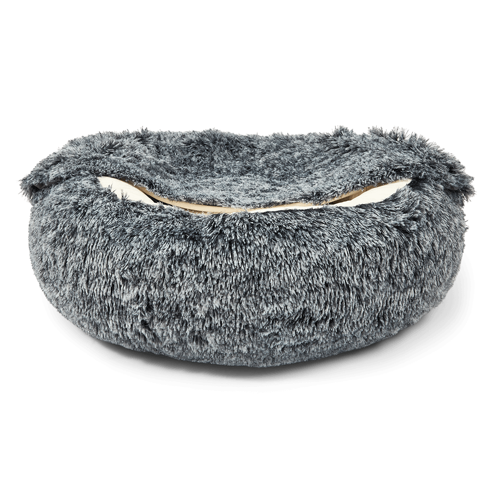 The Paws for Life Cosy Calming Hooded Cave Bed For Dogs And Cats Charcoal features a unique blanket-style hood that allows pets to burrow and snuggle deep within the soft fabric. This versatile sanctuary combines the security of a bolster bed with a hooded cover to help soothe anxious pets and provide a warm, private resting place