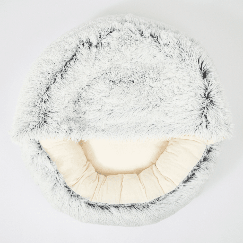 - A high-loft 15D PP fibre filling ensures the Cosy Calming Hooded Cave Bed For Dogs And Cats Grey retains its shape and support over time