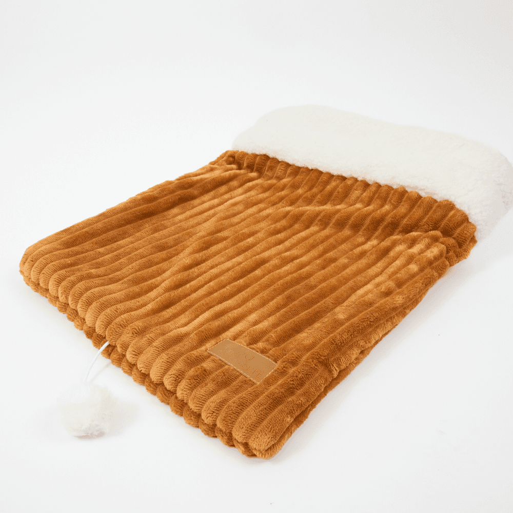 The Catsentials Cosy Cave Cat Bed Brown is a soft sleeping bag designed to offer a warm and private hideaway for cats to snuggle into. This burrow-style bed provides a soothing environment that helps your feline friend feel protected while they rest