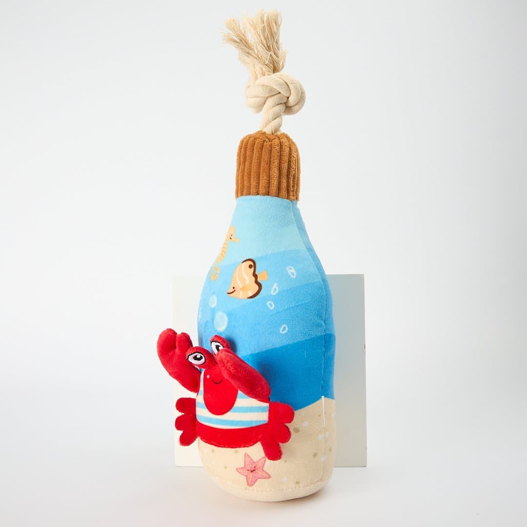 The Paws For Life Floating Summer Beach Bottle Dog Toy With Rope is a buoyant, squeaky companion perfect for endless games of fetch on land or in the water. Its engaging design and durable materials make it the ultimate toy for summer adventures.