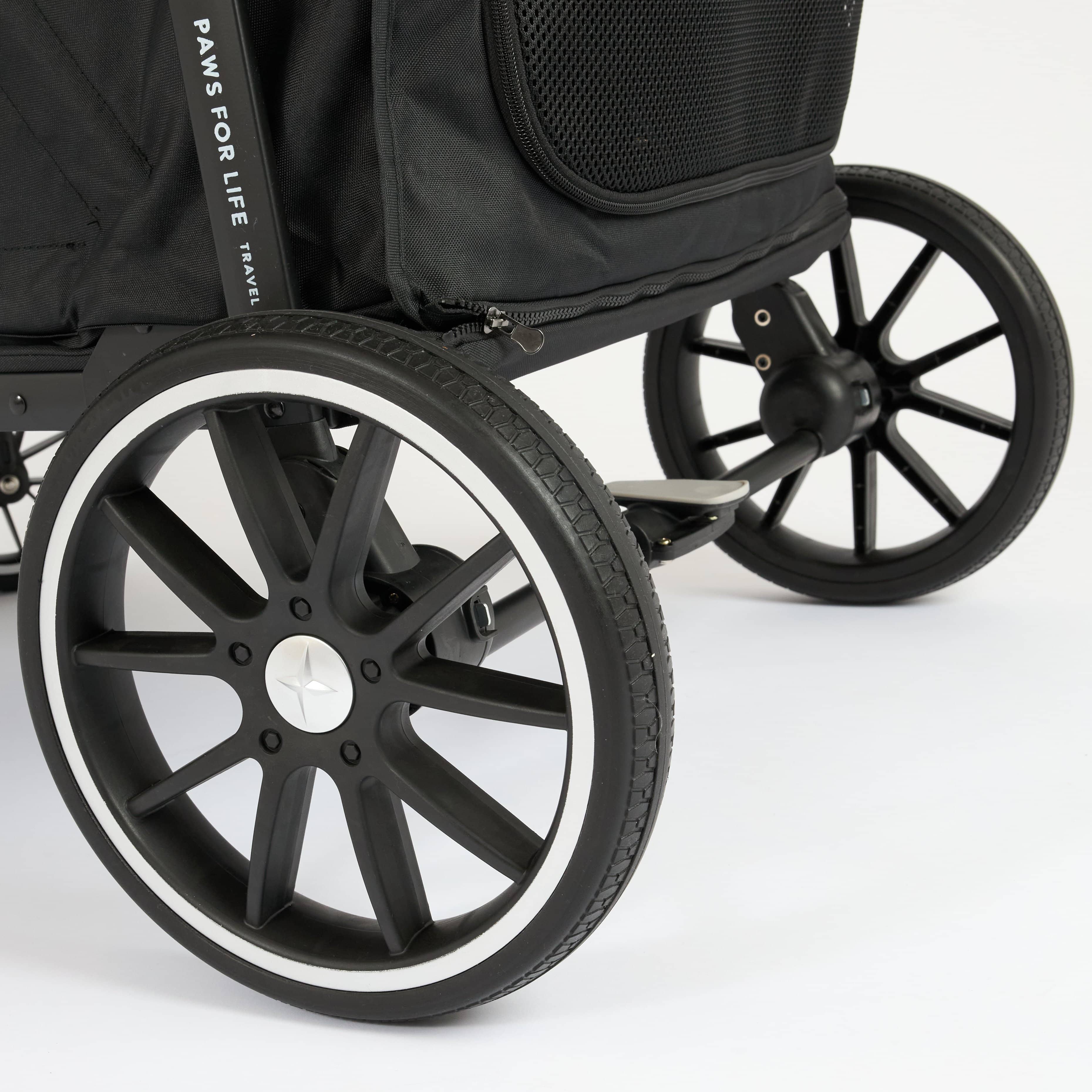 - Provides a smooth ride on various terrains, including cobblestone roads, lawns, and sandy surfaces