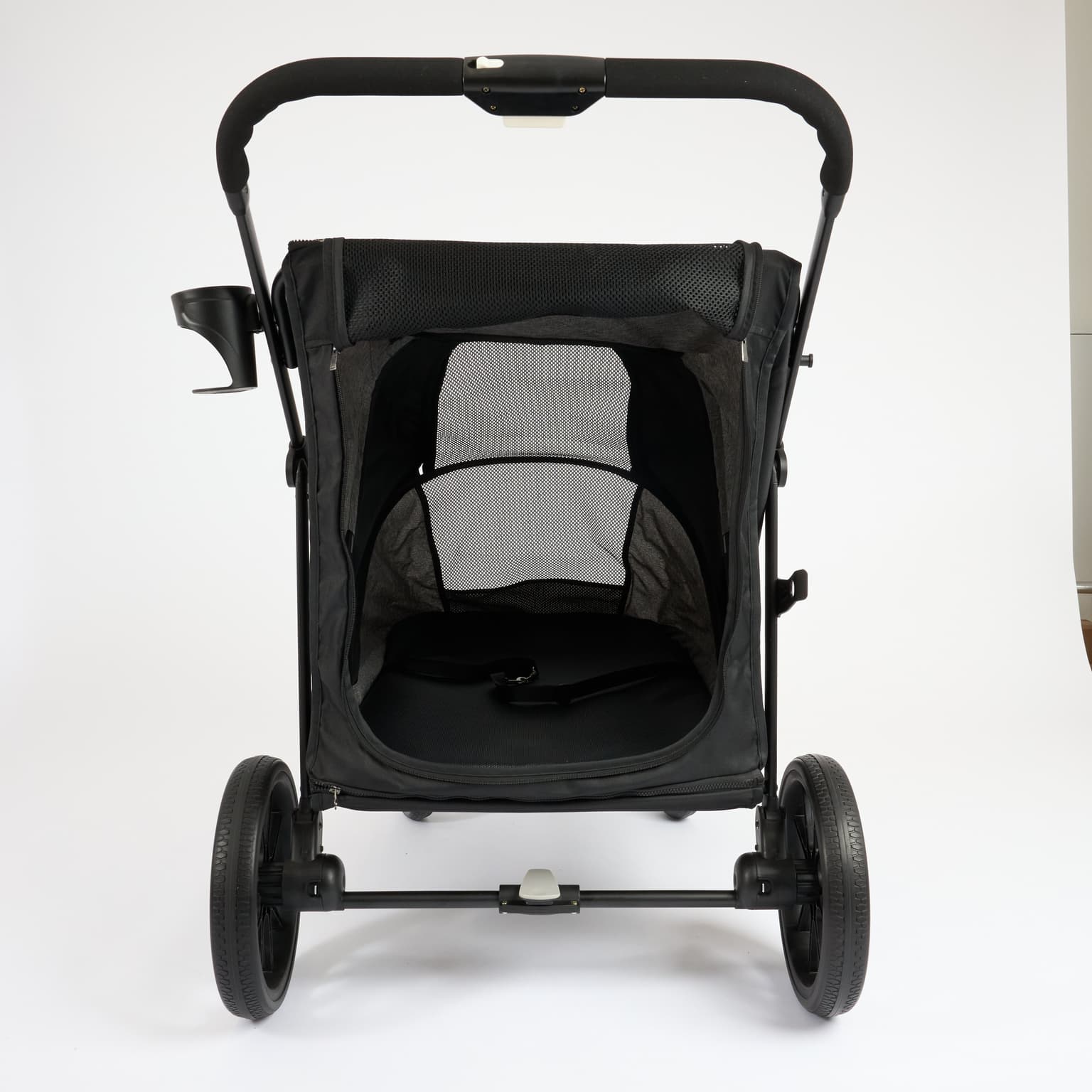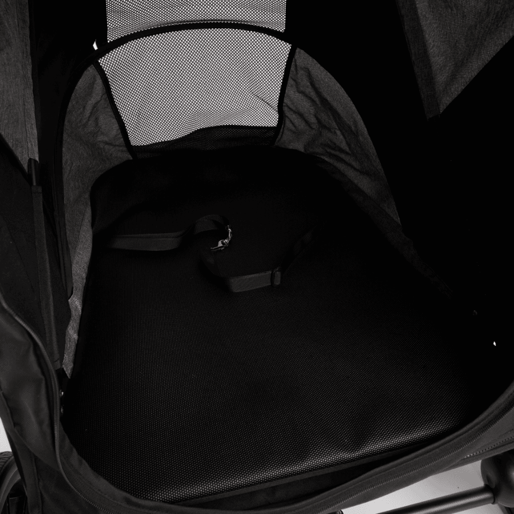 - Adjustable canopy with windows to see inside