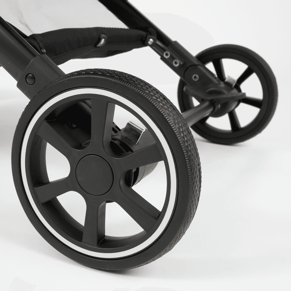 - Front wheels (14 cm) and rear wheels (16.5 cm) for smooth mobility