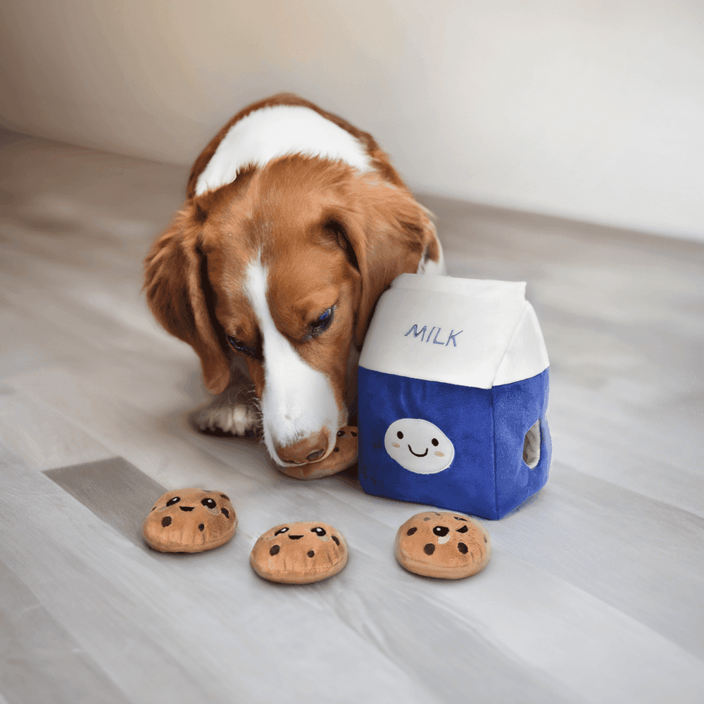 Keep your dog engaged and tap into their natural urge to hunt with Paws for Life Hide and Seek Bikkies Dog Toy. This delightful toy offers a fun challenge, stimulating your dogs mental and physical skills as they sniff and dig out plush cookies from a cozy milk carton.