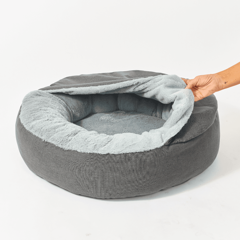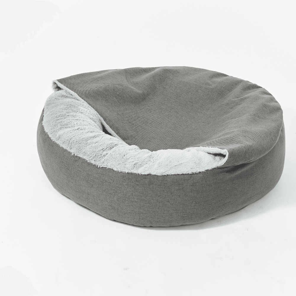 Paws for Life Hooded Pet Bed Faux Linen Dark Grey