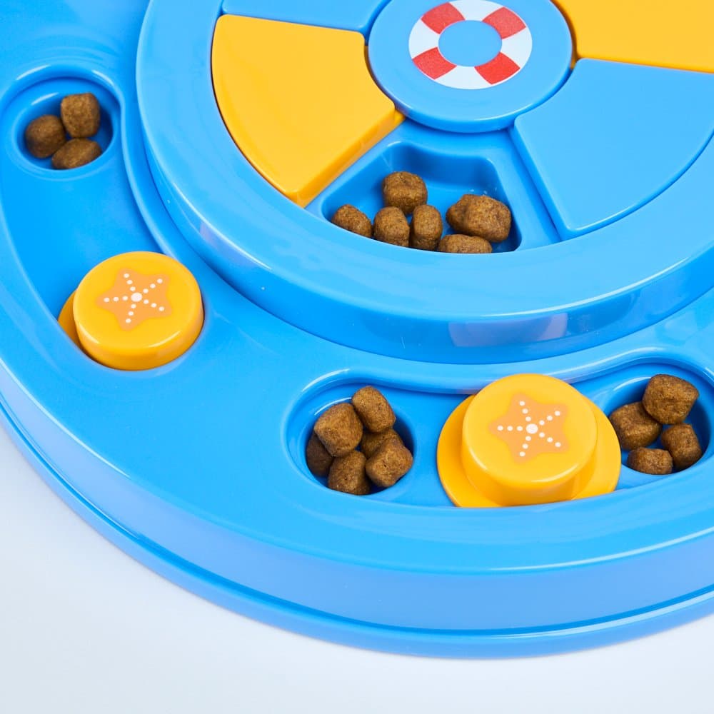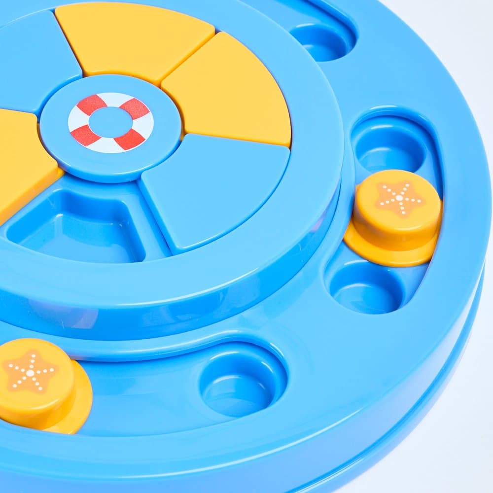The Paws for Life Interactive Treat Puzzle Activity Dog Toy Summer Beach brings seaside fun to your living room, turning snack time into a stimulating game. This puzzle challenges your dog to slide pegs and swivel the centre disc to uncover hidden treats, promoting mental enrichment.