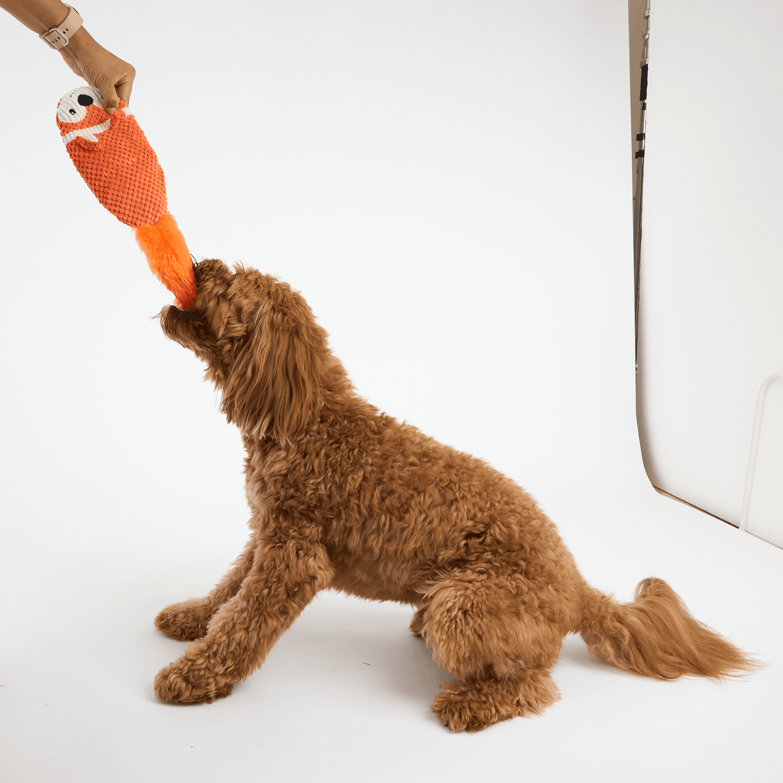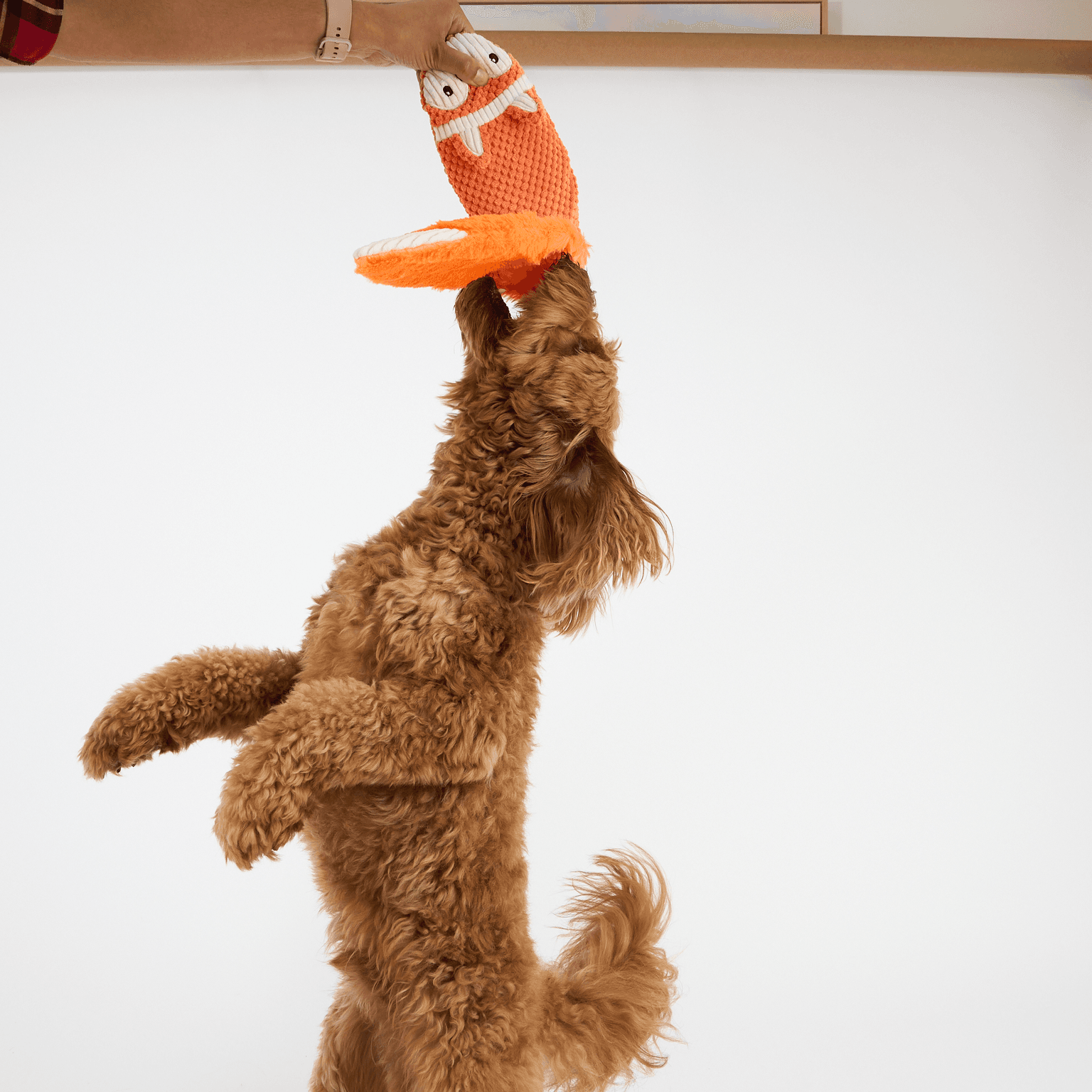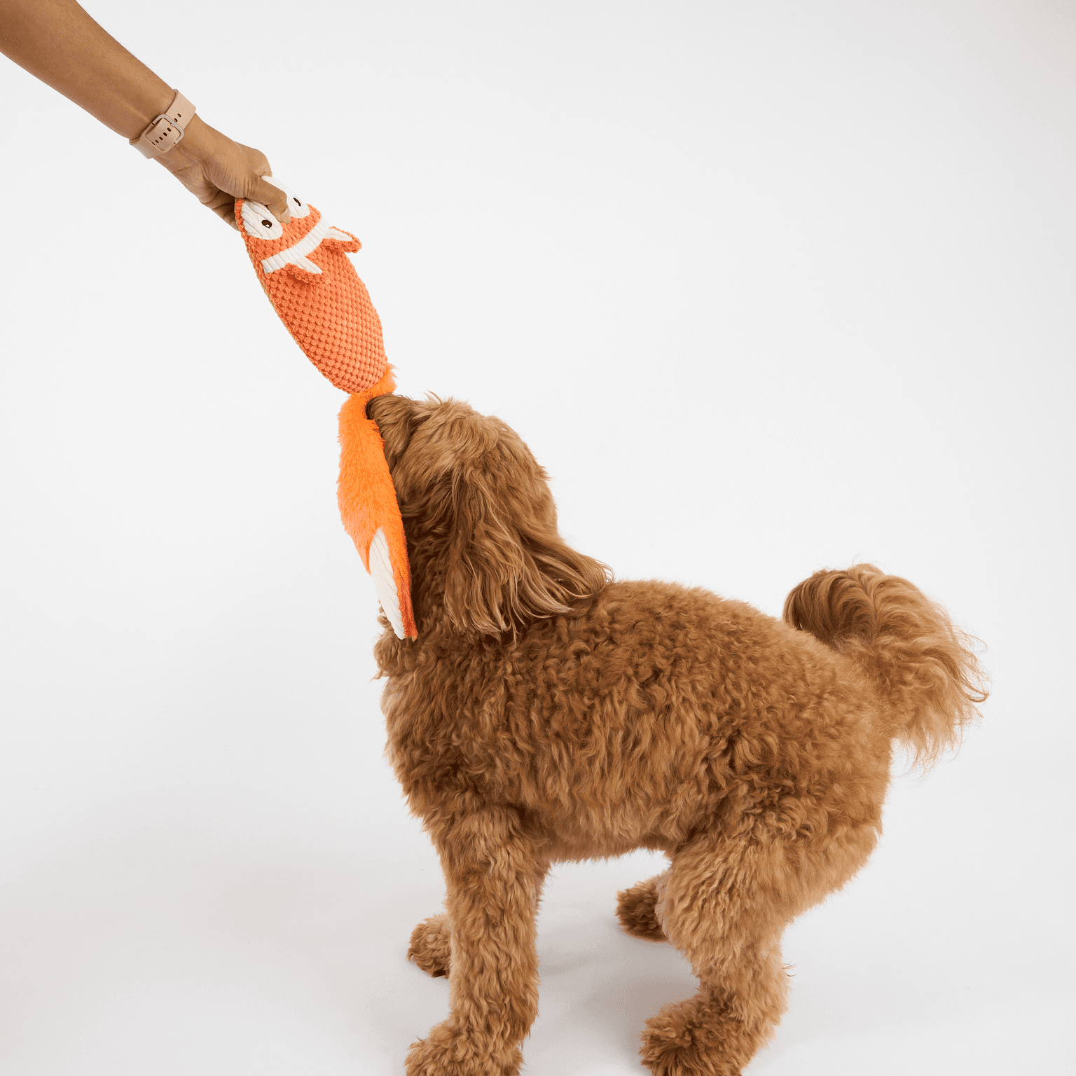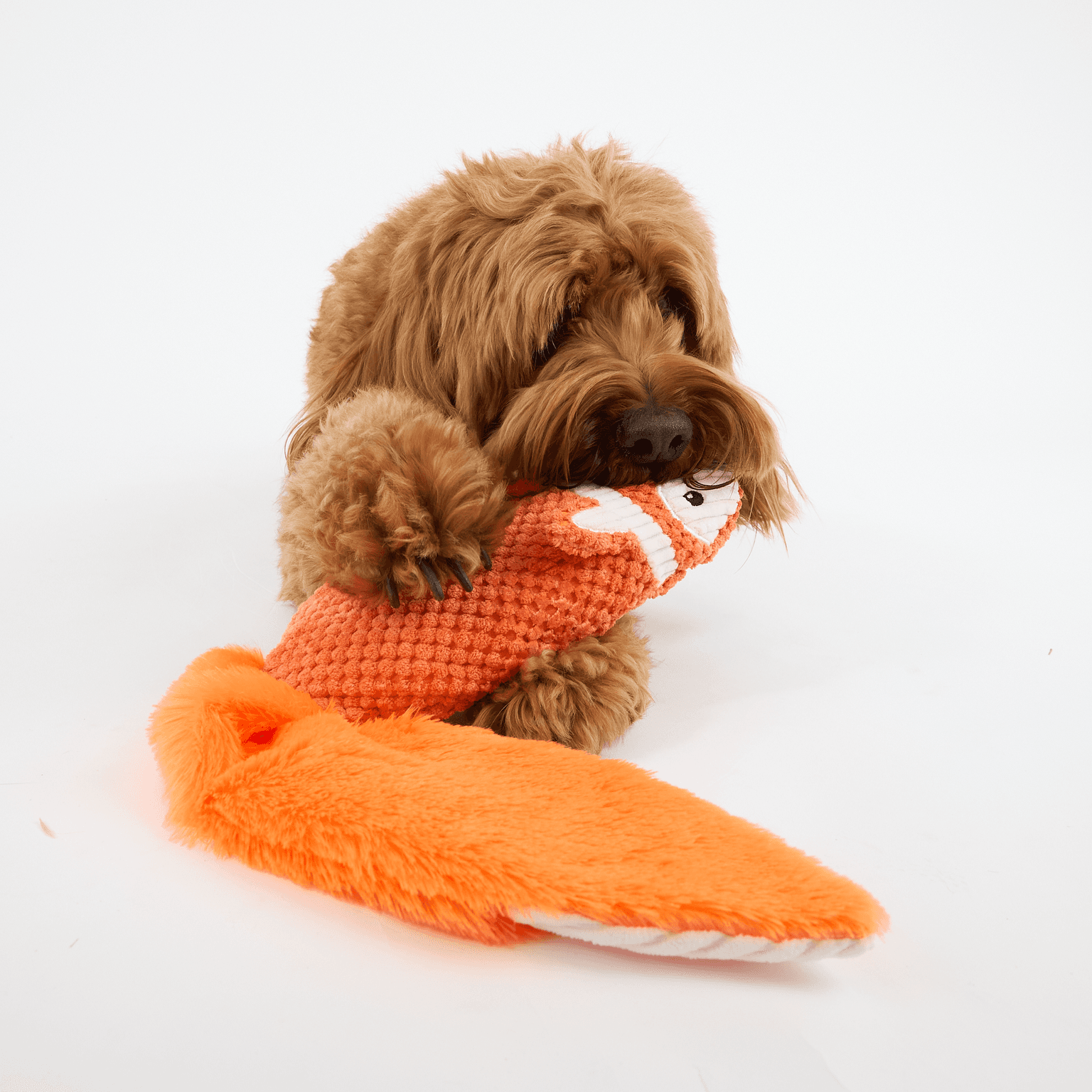 The Paws for Life Large Stuffing Free Fox Dog Toy is designed to provide all the fun without the fluff, making it a perfect mess-free option for your pet. Its flat, floppy body combined with engaging squeaky and crinkly sounds will satisfy your dog's natural instincts to shake and play.