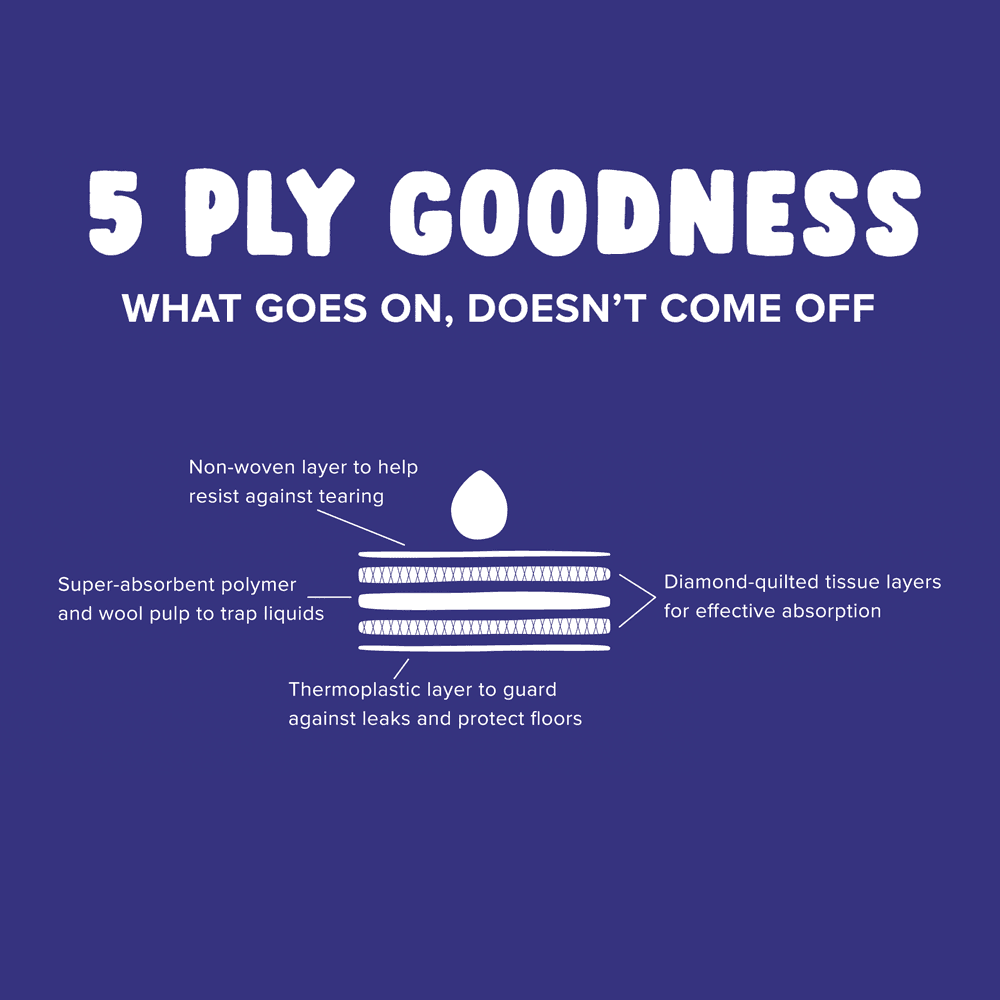 - Highly absorbent core locks in moisture and odors effectively