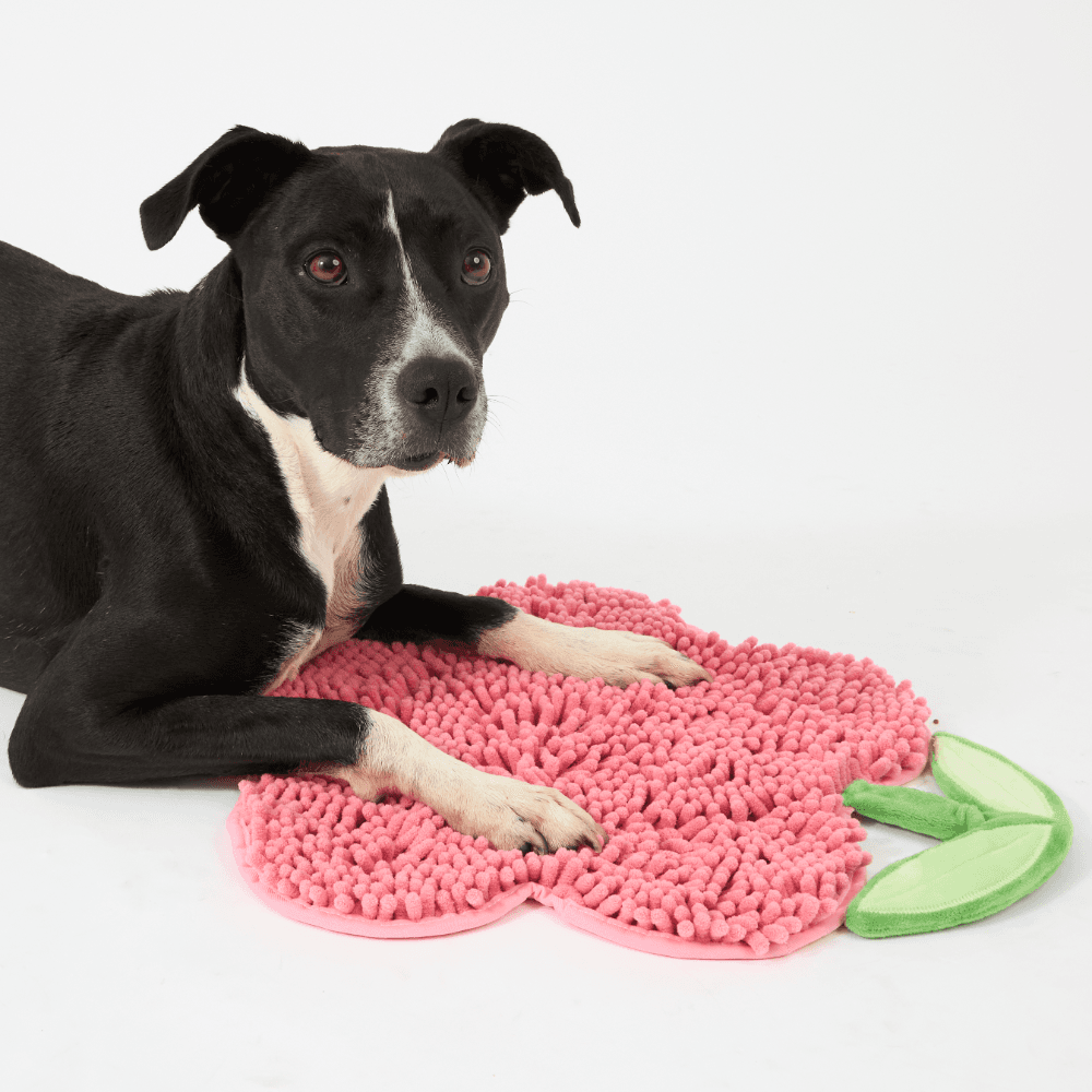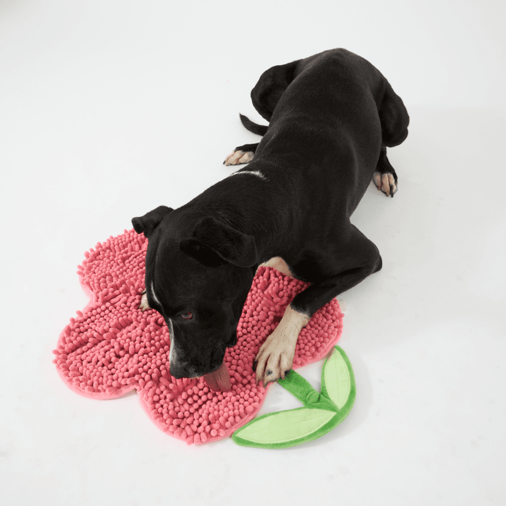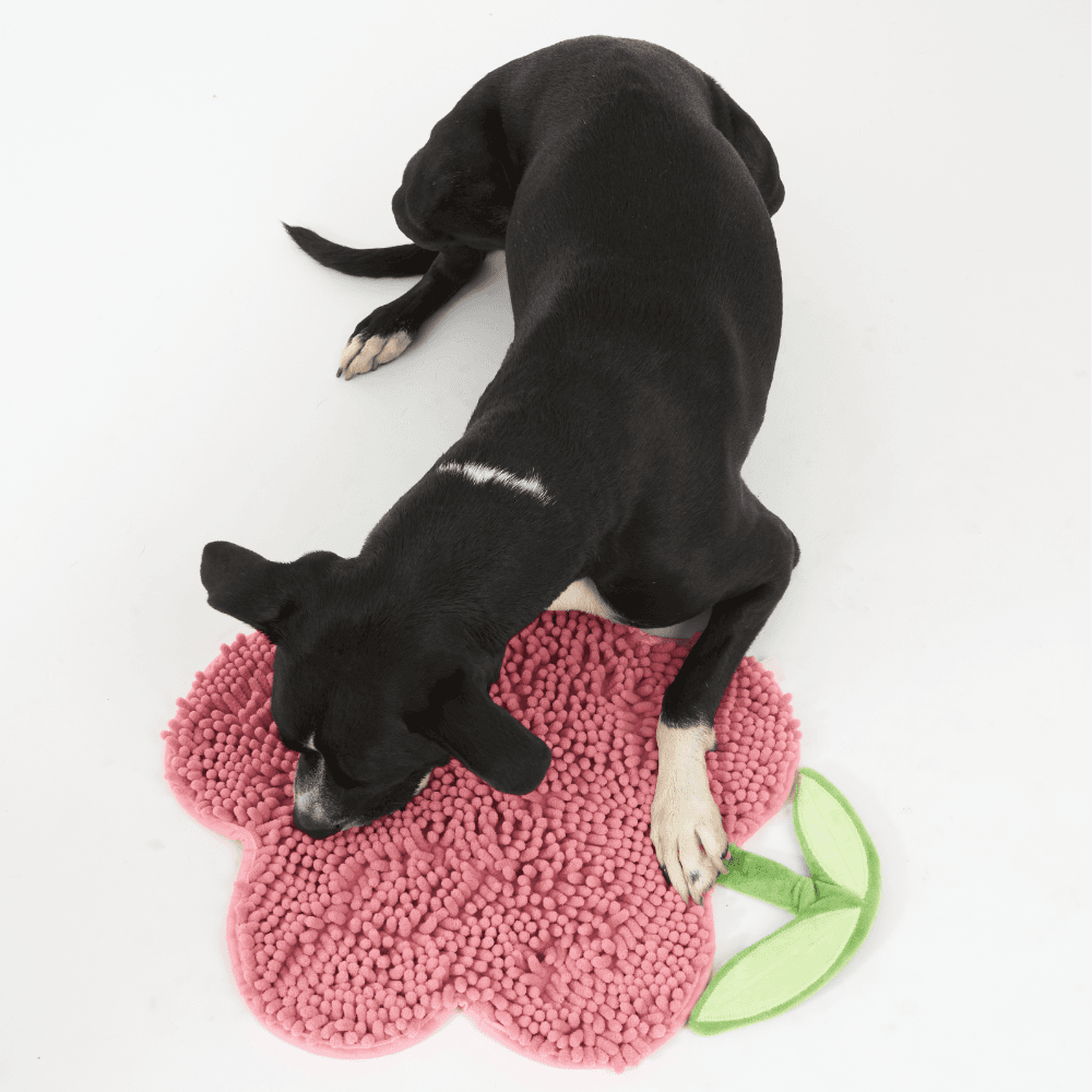 The Paws for Life Pink Flower Toggle Snuffle Mat transforms mealtime into a fun sniffing adventure that stimulates your dog's natural foraging instincts. Simply tuck kibble or treats among the soft chenille petals to encourage slower eating and provide rewarding mental enrichment.