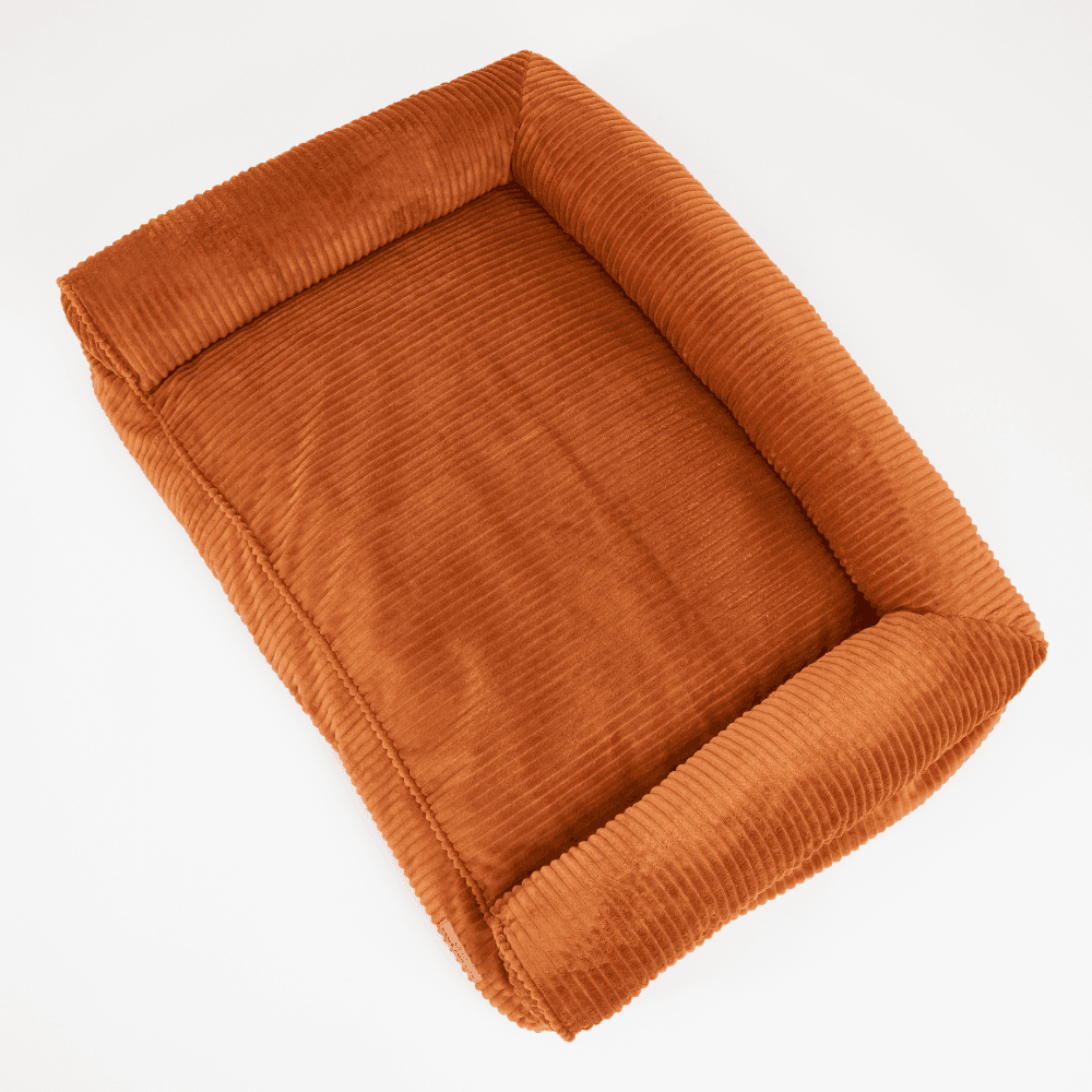 - Raised bolstered edges provide a dedicated headrest and sense of security for pets who prefer to curl up
