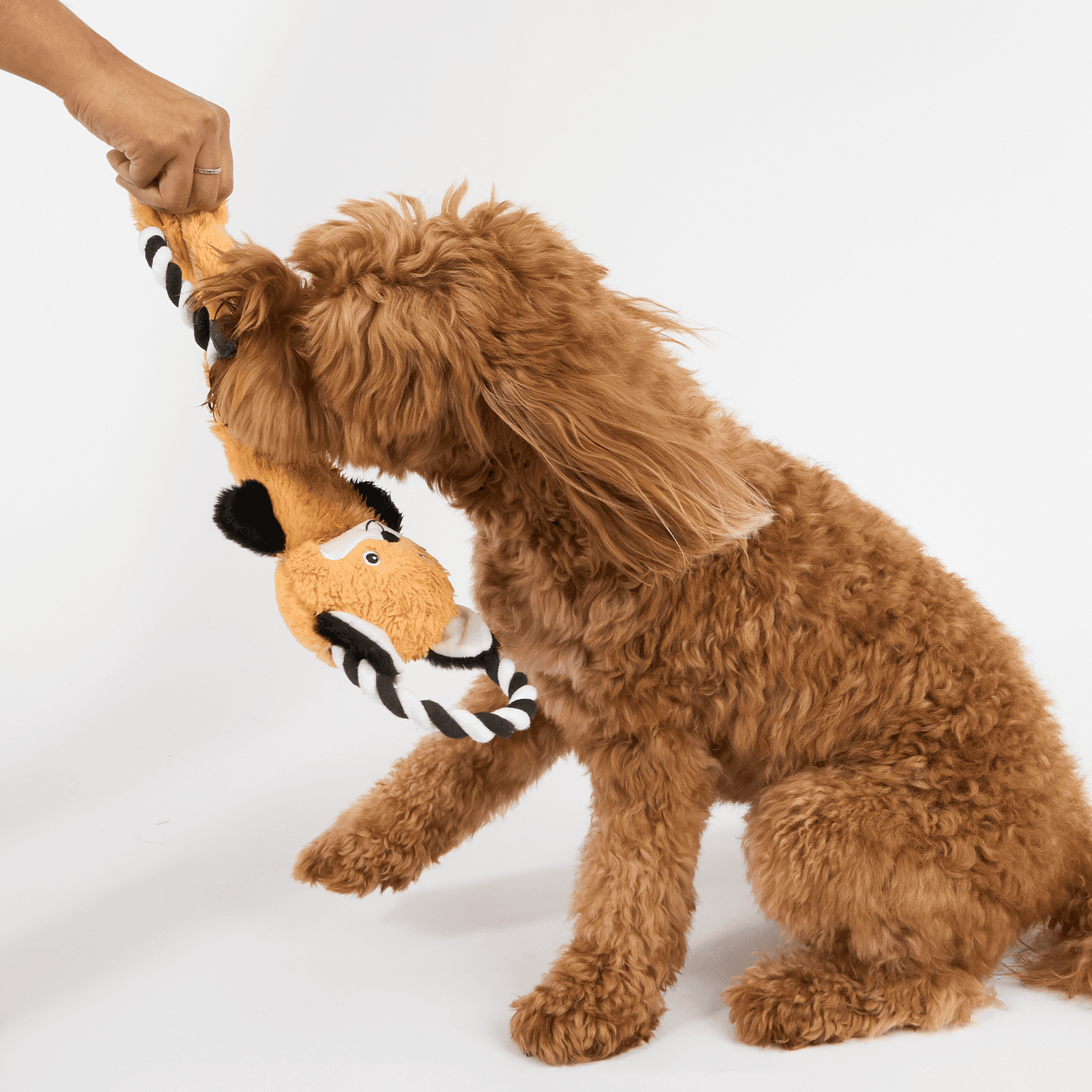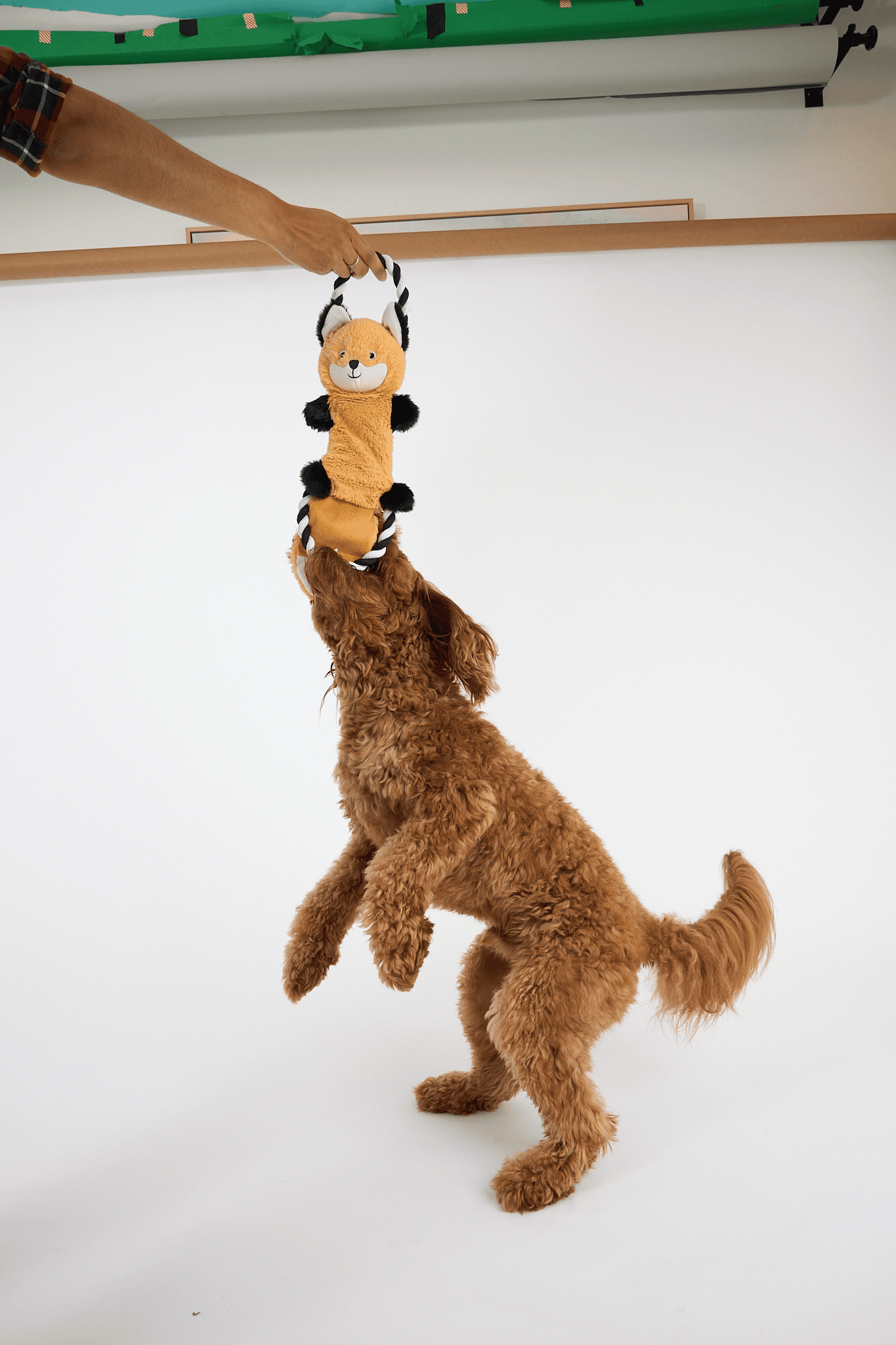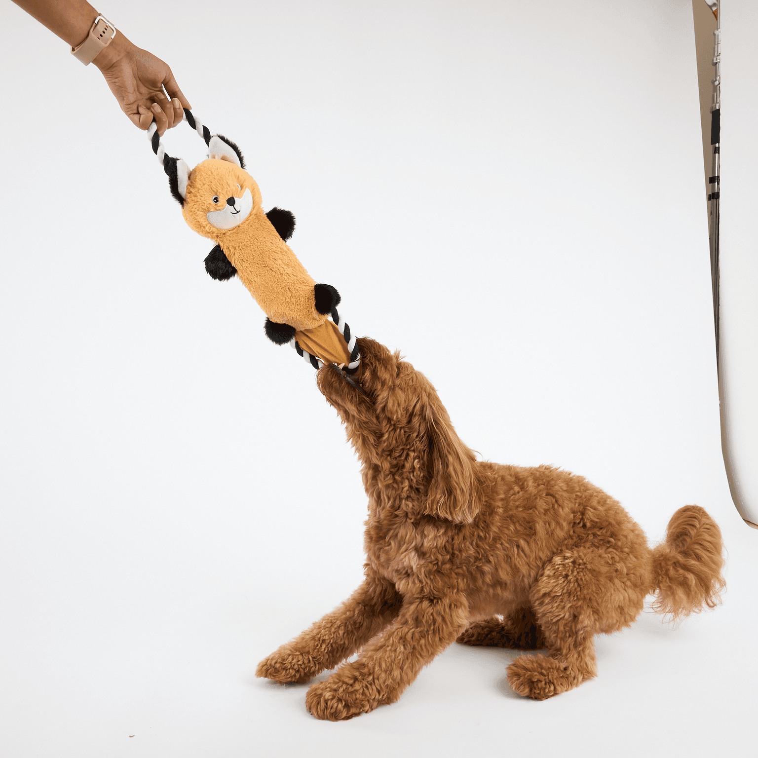 The Paws for Life Plush Fox with Rope Dog Toy is engineered for exciting, interactive play with its engaging textures and sounds. This toy's minimal stuffing design and durable rope construction make it a fantastic choice for dogs who love a vigorous game of tug-of-war.