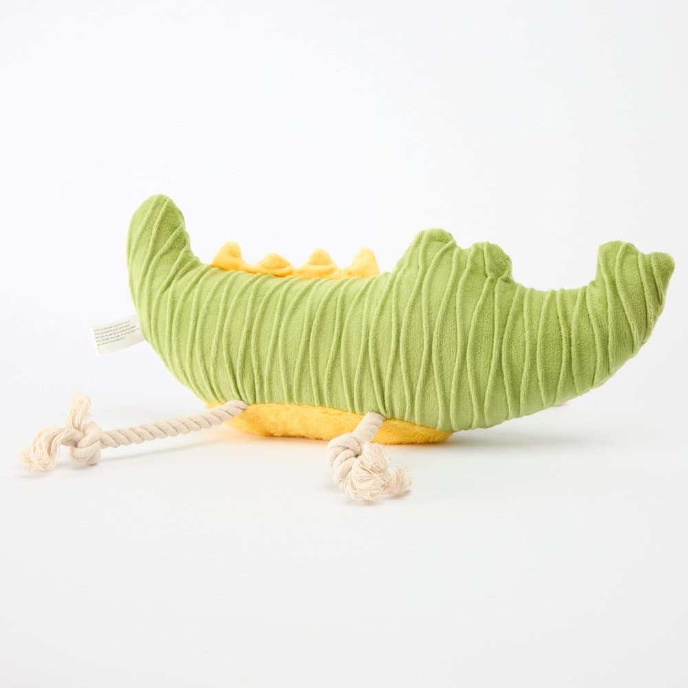 The Paws for Life Recycle Life Ripple Crumple Crocodile Dog Squeaker Toy is a thrilling, eco-friendly toy for your dog, with the filling made from recycled plastic bottles. This playful crocodile combines a unique water-ripple fabric with durable rope accents, offering a variety of textures for both cuddling and tugging.