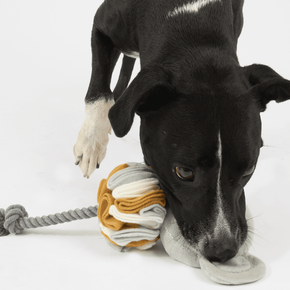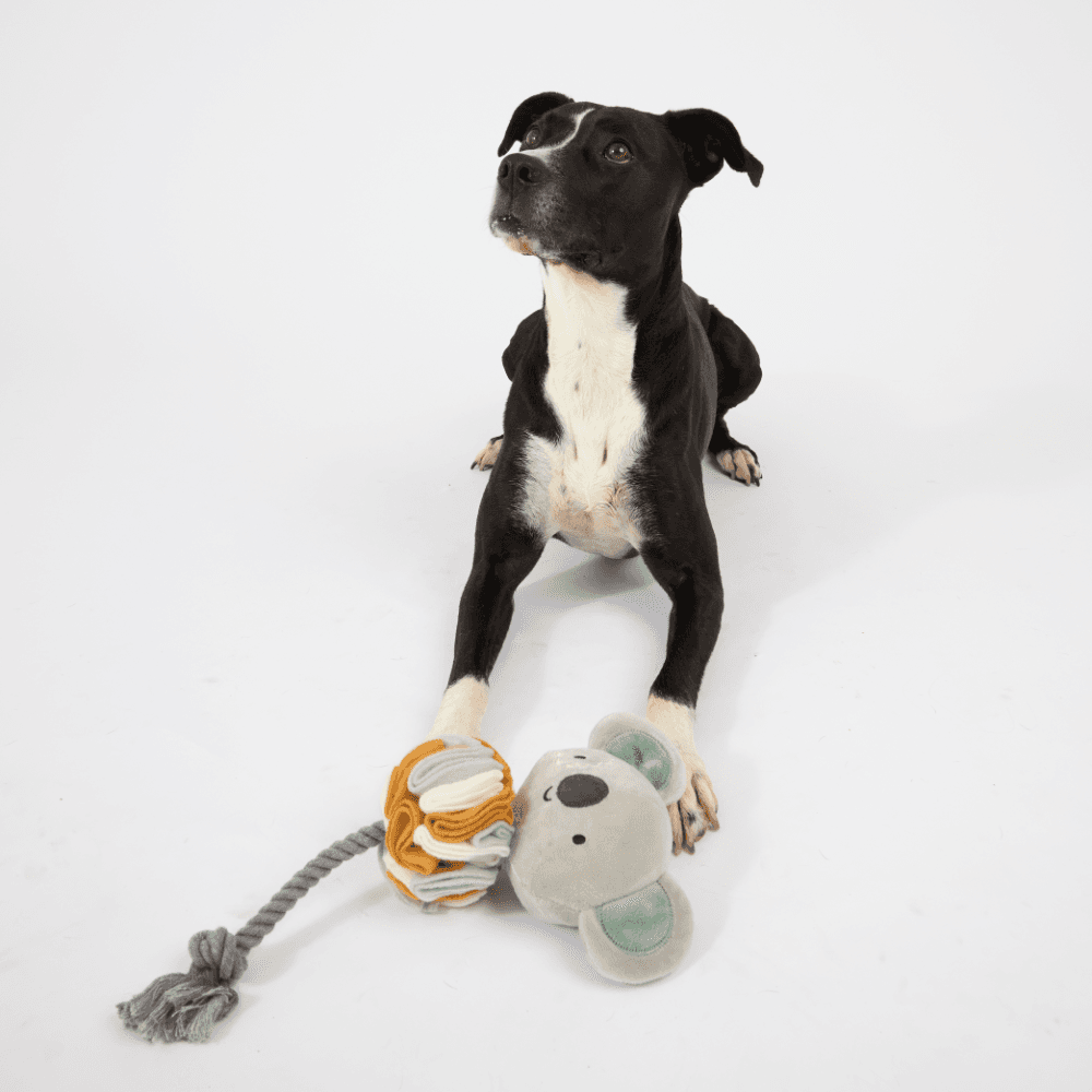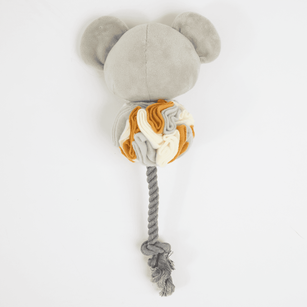 The Paws for Life Recycle Life Snuffle Koala with Rope Tail Dog Toy is a multi-functional, eco-friendly toy with the filling made from recycled fabrics. This clever koala combines the fun of a classic plush toy with a special snuffle zone, engaging your dog's mind and sense of smell.