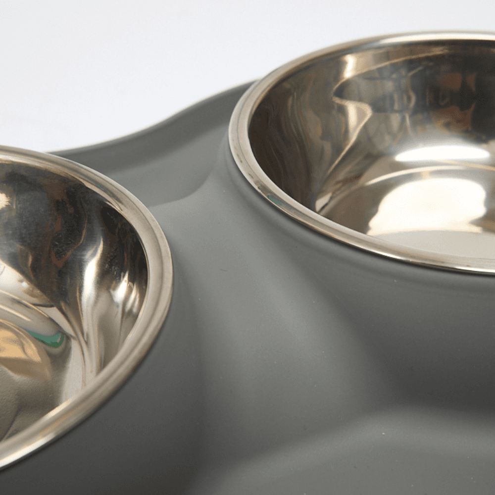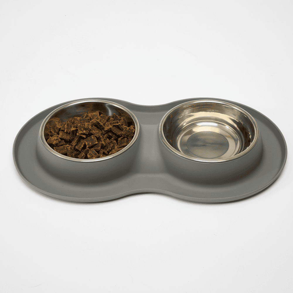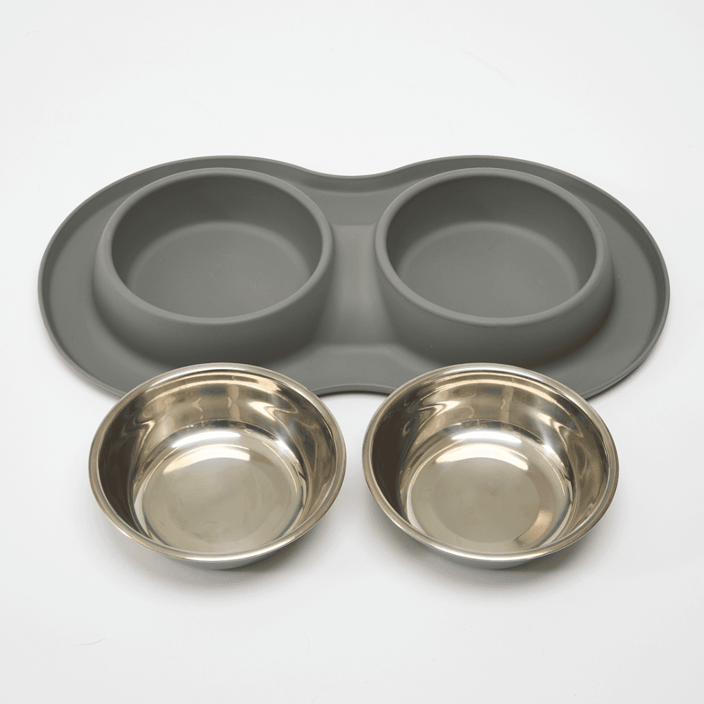 Paws for Life Silicone Mat Double Stainless Steel Dog Bowl Grey