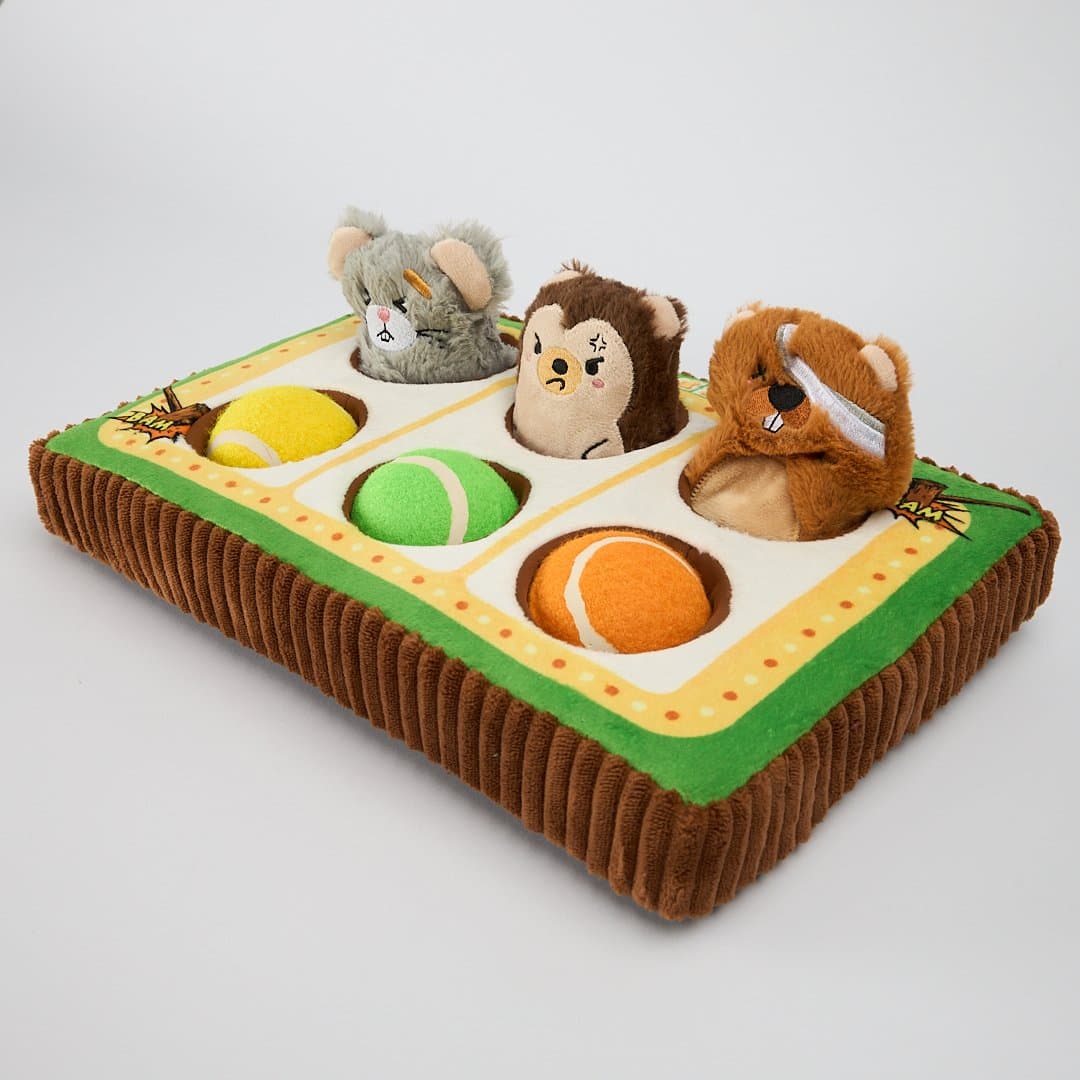 The Paws for Life Snuffle Mat Dog Toy Whack-a-Mole Style brings the classic arcade game to life for your dog, offering a feast of sniffing and fetching fun. This interactive mat features plush critters and squeaky tennis balls that pop up from their holes, with fleece-lined cavities perfect for hiding treats to challenge your dog's foraging skills.