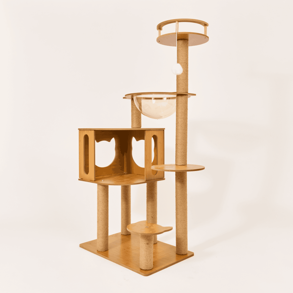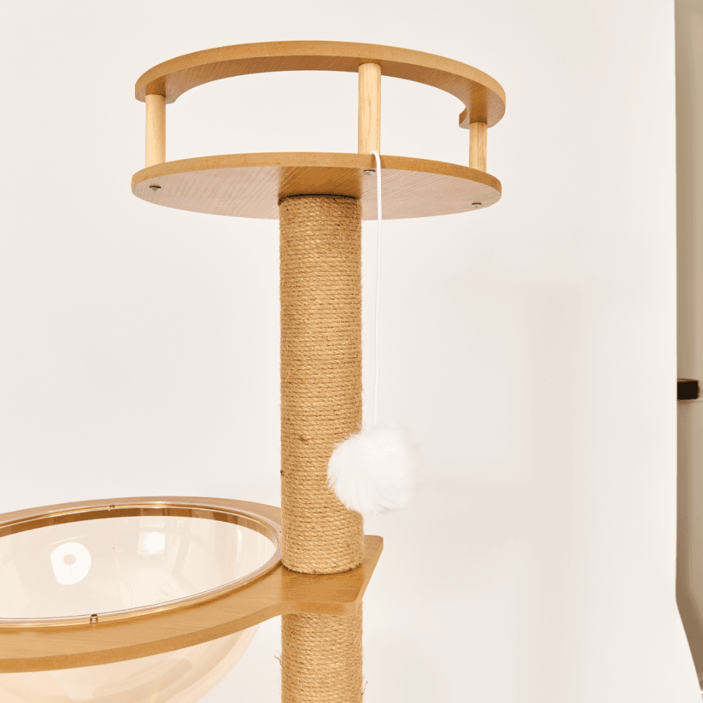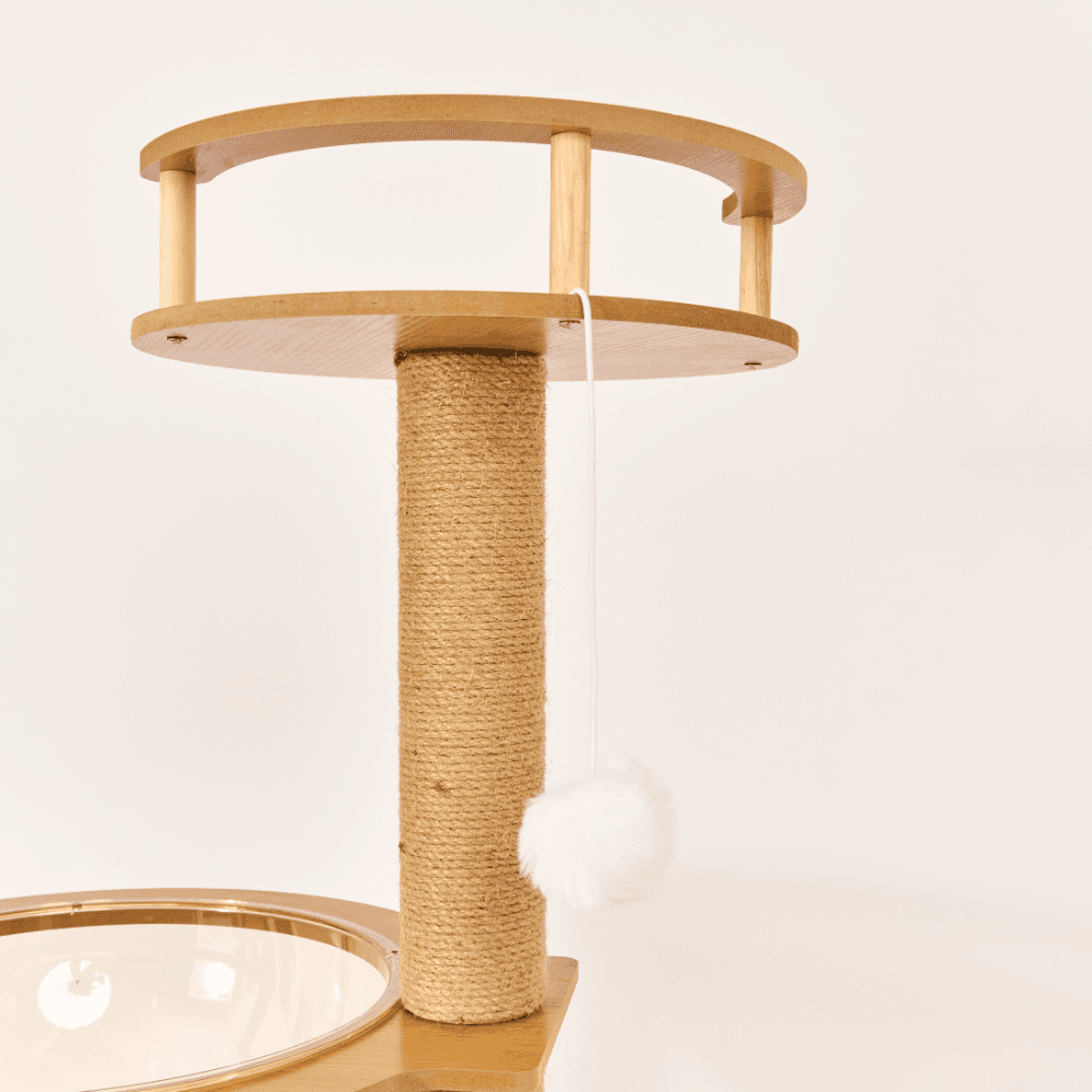 The Paws for Life Tall Cat Scratching Tree in natural is a versatile and durable product designed to provide your cat with both a relaxing space and plenty of entertainment. With multiple platforms, scratching posts, and a resting bowl, it's the perfect way to cater to your cat's natural instincts while protecting your furniture.