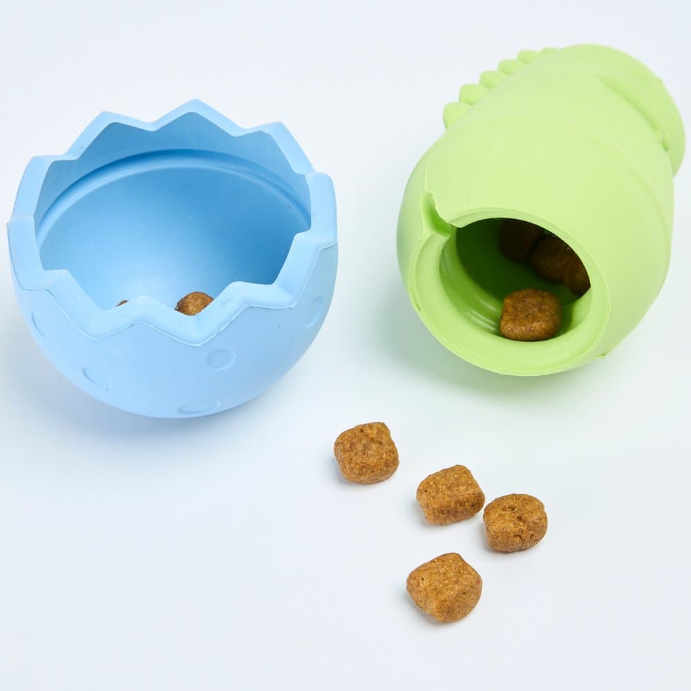 The Paws for Life Treat Dispensing and Stick Holding Dinosaur Egg Dog Toy is a roarsome puzzle that will have your canine archaeologist stomping with excitement. This dual-function toy can be stuffed with kibble in its core or fitted with a bully stick in its star-shaped port, providing a prehistoric challenge with a tasty reward.