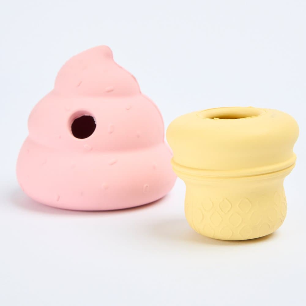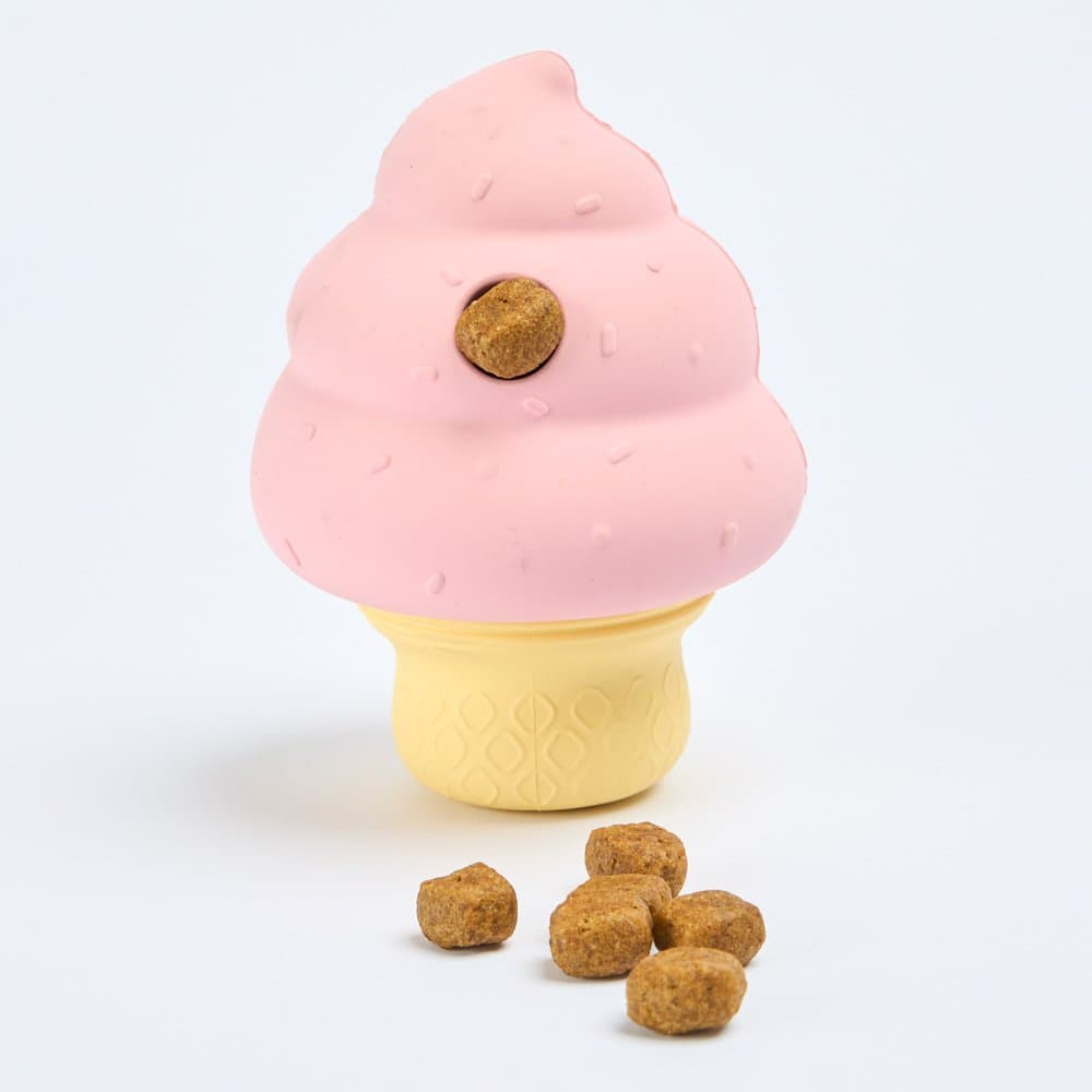 The Paws for Life Treat Dispensing and Stick Holding Icecream Dog Toy is the sweetest way to keep your dog entertained with a dual-function puzzle. Simply stuff tasty kibble into the swirl top and secure a bully stick in the cone base for double the fun and a rewarding challenge.