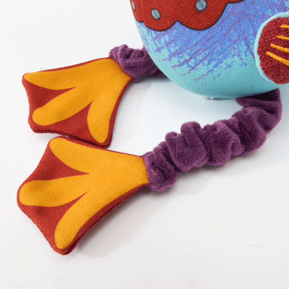 The Paws for Life Tuff Canvas Pelican with Bungee Legs Dog Tug Toy is built to make interactive games of tug-of-war more exciting and durable. This toy combines a tough canvas body and an engaging squeaker with springy bungee legs, creating a satisfying recoil action that your dog will love.