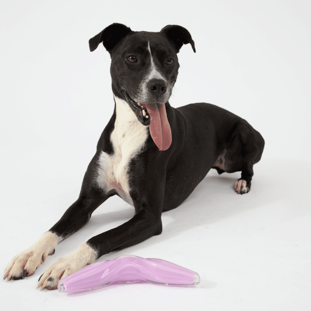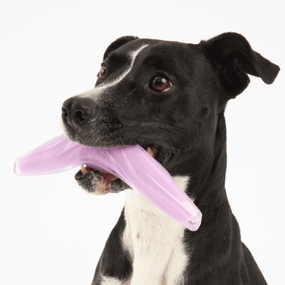 The Paws for Life Tuff Chew Nylon Rubber Purple Boomerang Dog Chew Toy is designed for impressive aerodynamic fetch sessions and satisfying gnawing. Its curved boomerang shape ensures great flight paths, while the durable dual-layer construction provides long-lasting resistance for dedicated chewers.
