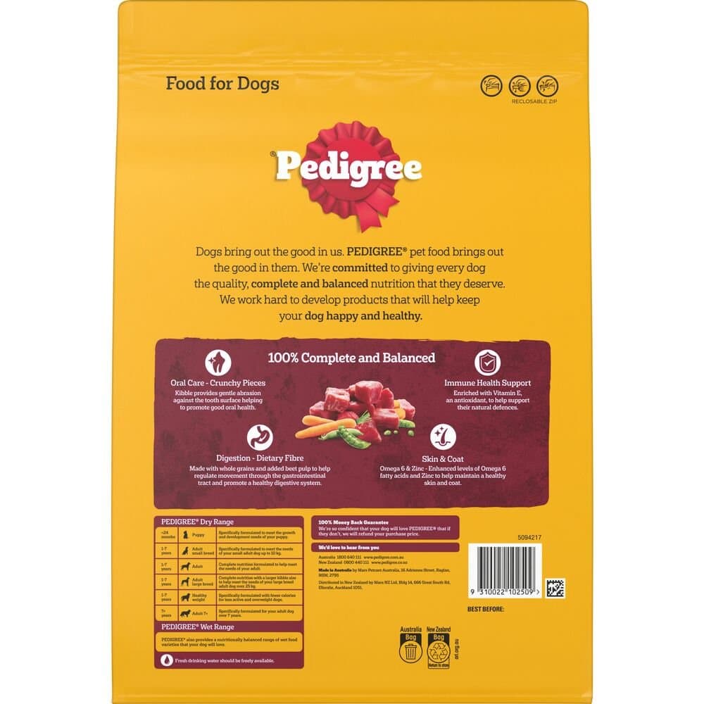 Wholegrain Cereals, Meat & Animal Ingredients (Chicken &/or Turkey &/or Duck &/or Beef (3.1%)), Poultry Fat, Flavour, Canola Meal, Vegetables (3.1%), Plant Fibre, Salt, Humectants, Minerals, Amino Acid, Water, Vitamins, Antioxidants, Preservative (Potassium Sorbate); Colours (Tetrazine, Indigotine, Sunset Yellow FCF, Ponceau 4R)