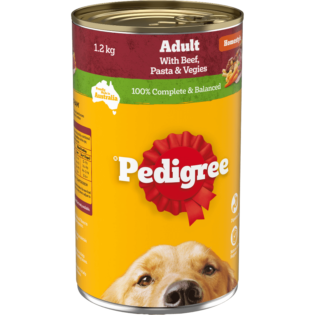 Pedigree Adult Wet Dog Food Beef Pasta Vegies Homestyle is a tasty and nutritious meal designed for adult dogs. Made with real beef, pasta, and a blend of wholesome vegetables, this homestyle recipe is formulated to provide your dog with a balanced diet, supporting their overall health and vitality. The tender chunks in gravy are easy to digest and deliver a satisfying meal your dog will love.