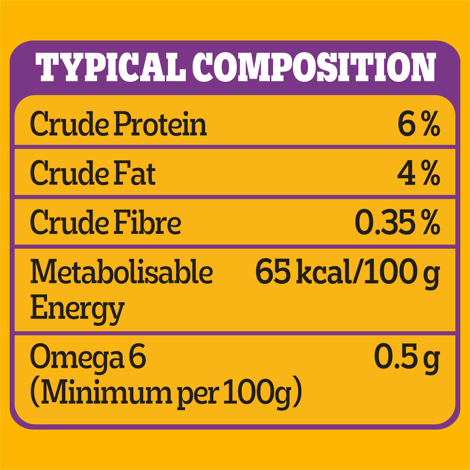 Meats (Chicken, Beef, Sheep &/ or Pork); Thickener; Binders (Gluten, Beef &/or Sheep); Vegetable; Vegetable Fibre; Gelling Agents; Sunflower Oil; Colouring Agents; Minerals; Vitamins and Flavours (including Garlic).