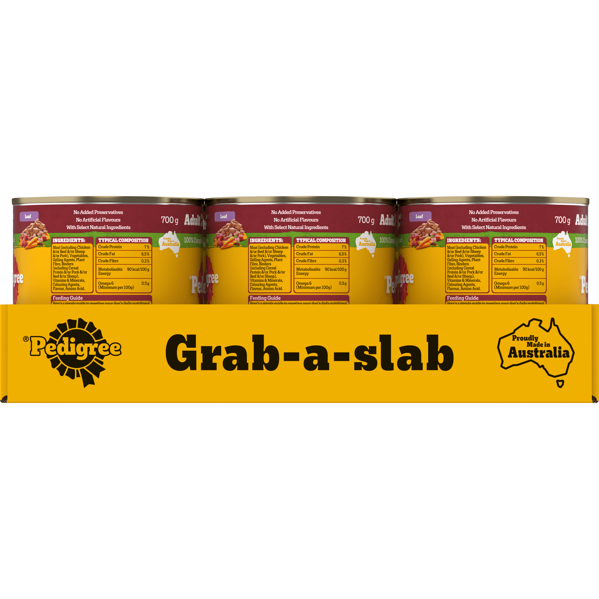 Chicken, beef, lamb &/or pork; vegetables; gelling agents; cereal; vegetable fibre; colouring agents; gluten; minerals; sunflower oil; flavours; amino acids & vitamins