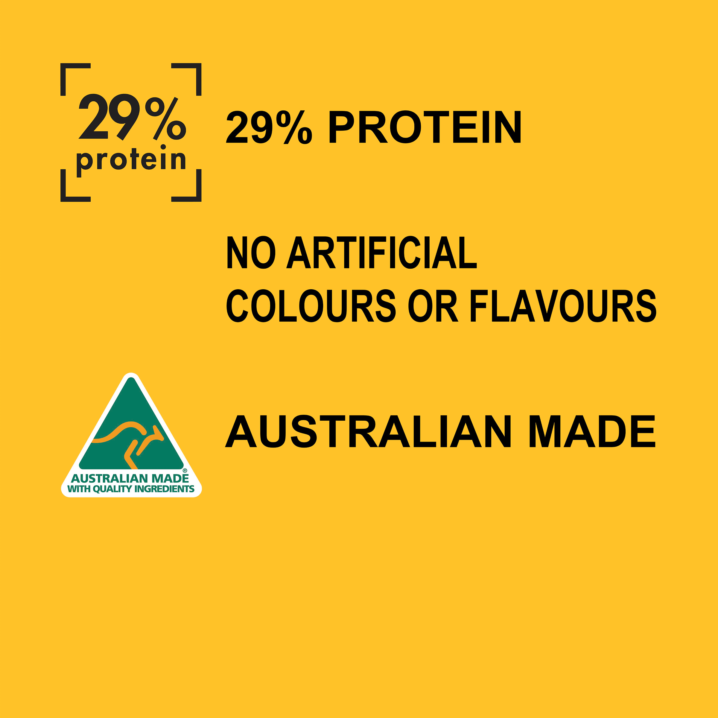 Cereals &/or cereal by-products, meat & meat by-products (poultry, beef &/or lamb), poultry palatant, tuna, beet pulp, minerals (iron, zinc, copper, potassium, calcium, phosphorus, manganese and selenium), iodised salt, vitamins (A, D3, E, B1, B2, B3, B5, B6, B9, B12 and choline), antioxidants and inulin