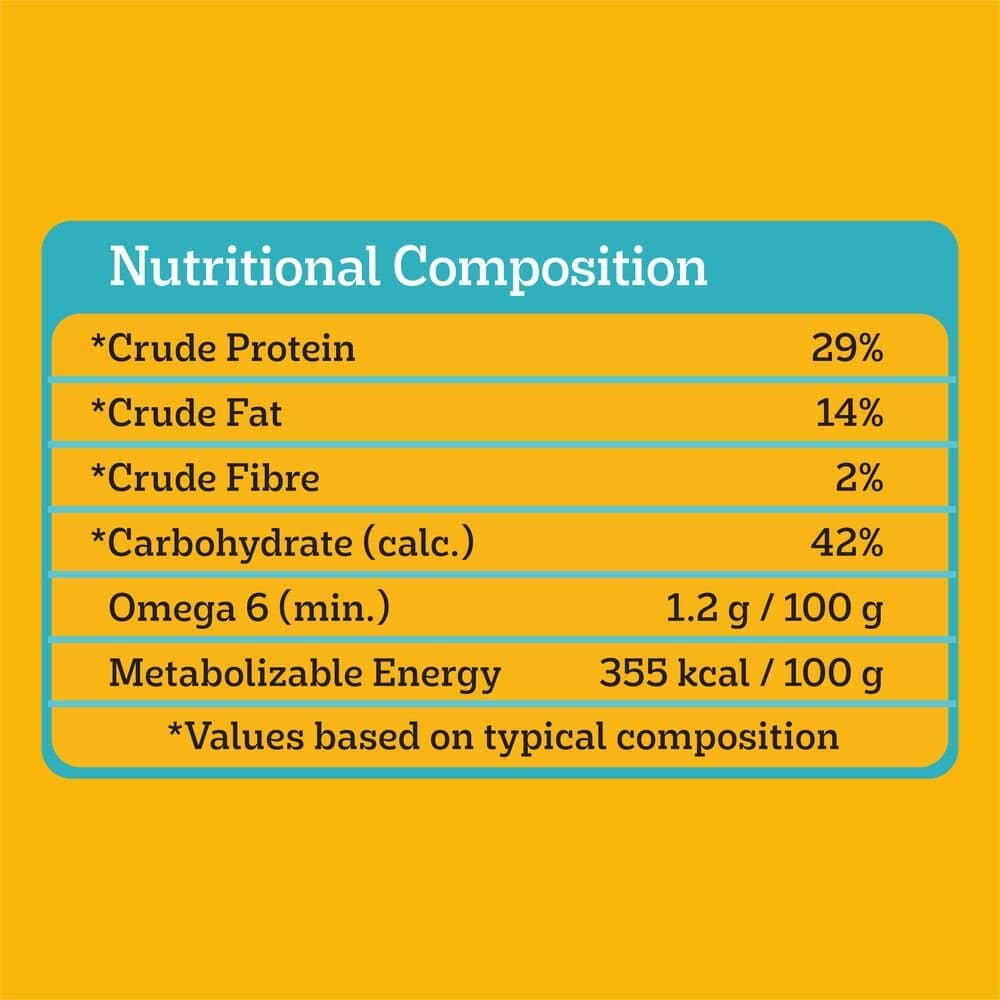 Wholegrain Cereals (Rice (3%)), Meat & Animal Ingredients (Chicken (equivalent to 35% Chicken) &/or Turkey &/or Duck), Poultry Fat, Canola Meal, Flavour, Cereal Protein, Plant Fibre, Minerals, Salt, Vitamins, Antioxidants, Inulin, Vegetables