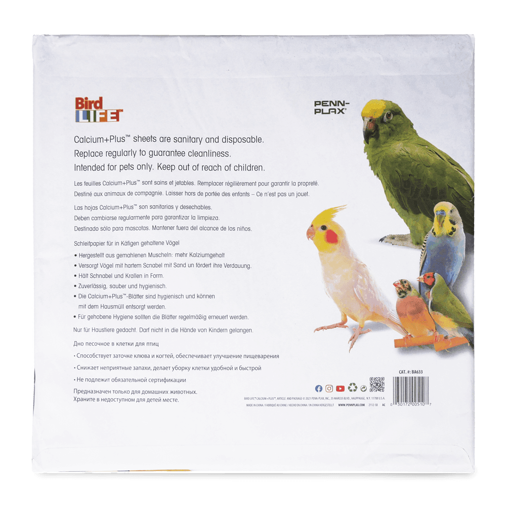 Penn Plax Sand Sheet Gravel Paper is designed to be placed at the bottom of all bird cages. Made with crushed sea shells for added calcium content, helps to trim your birds claws and beak. It also provides grit for hard billed birds and aids digestion. Penn Plax Sand Sheet is safe to use and improves sanitation by being disposable and making cleaning easy. Regular sheet replacement is recommended to guarantee cleanliness.