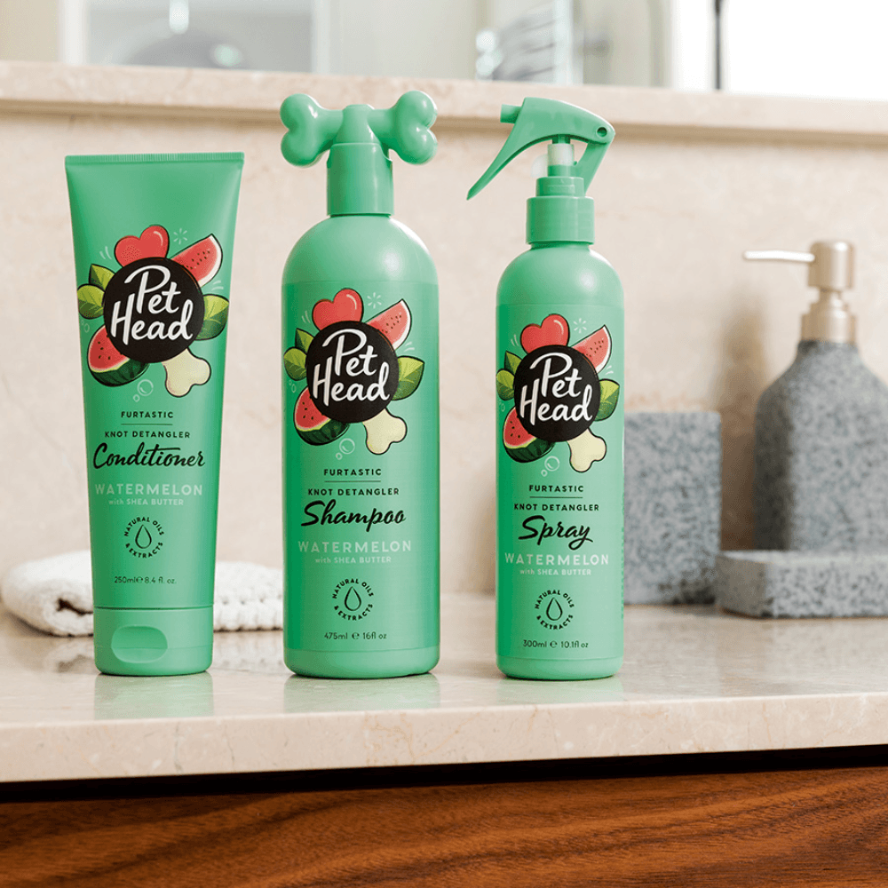 FURTASTIC For long & curly coats, this Furtastic detangling spray will make those knots disappear and leave your poochs coat soft, silky, and tangle-free! With a refreshing blend of watermelon, melons, strawberry, peach, and just a hint of vanilla, your dog will smell Furtastic and ready for cuddles!