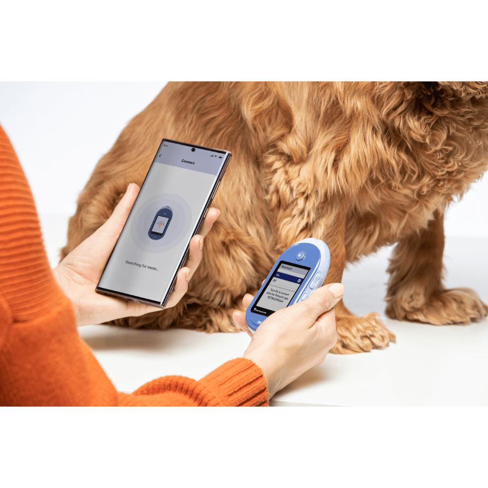 PETRACKR Blood Glucose Monitoring System is a veterinary-grade device designed specifically for managing diabetes in cats and dogs. It delivers fast, reliable results at home, helping you monitor and manage your pet's blood glucose levels with confidence using the PETRACKRsmartphone app.