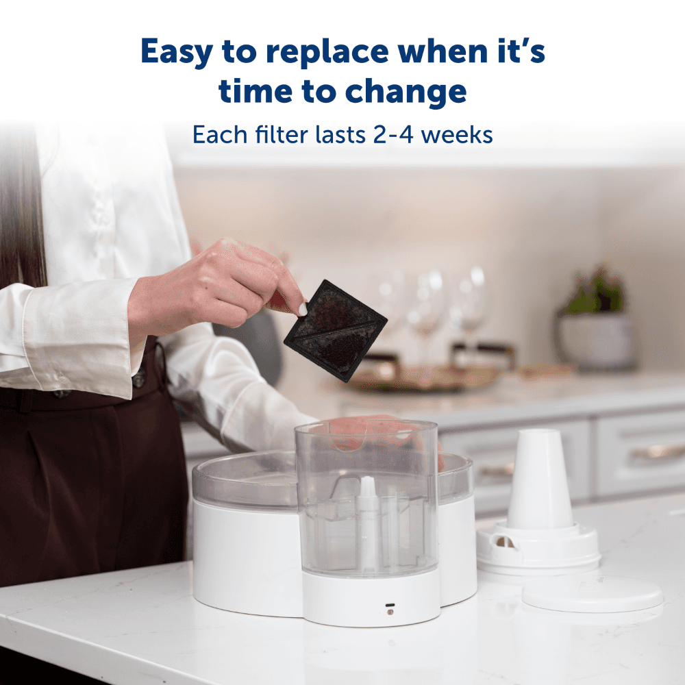 The PetSafe Ion-X Pet Fountain Filters uses a sophisticated dual-filtration system to ensure your pet’s drinking water is always soft, clean, and appealing. These replacement components are essential for maintaining the performance of your hydration system and help your pet stay healthy and happy by removing impurities.