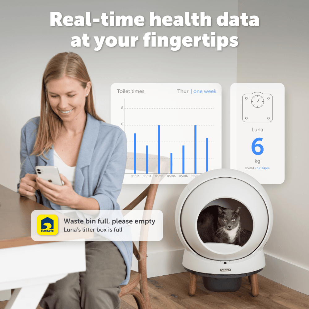 - The integrated PetSafe Pet Companion app allows you to track your cat's weight and litter box usage directly from your smartphone