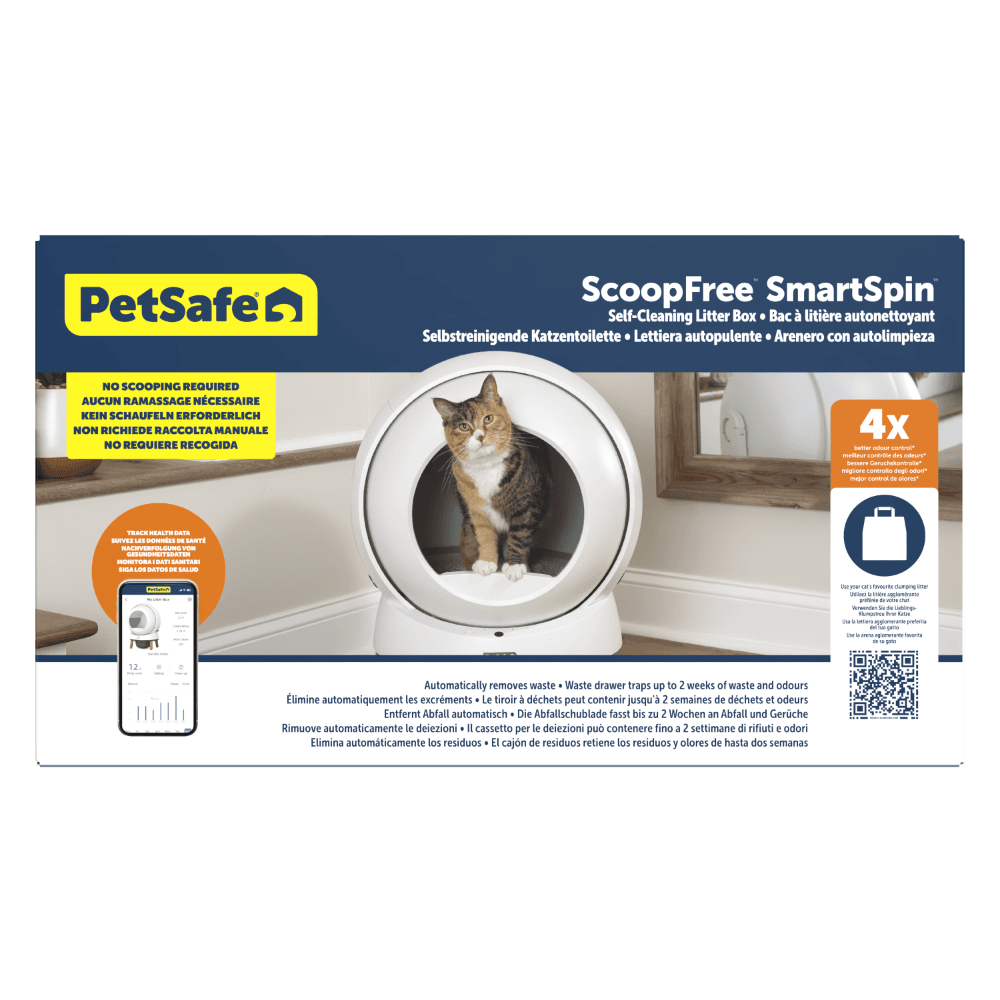 The PetSafe ScoopFree SmartSpin Self-Cleaning Litter Box is an advanced, app-connected waste management system that automatically sifts clumps into a sealed drawer for a hands-free cleaning experience. By providing real-time health insights and superior odour control, this intelligent unit helps you monitor your cat's wellbeing while ensuring they always have a fresh bed of litter.
