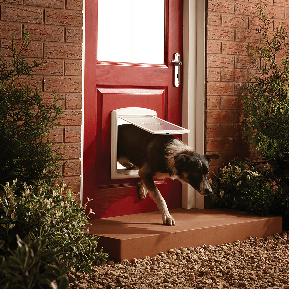 The Staywell Original 2-Way Pet Door is a versatile access option for pets, featuring a transparent flap and a two-way lock. This pet door is designed to be functional across all seasons, ensuring a perfect balance of freedom and control for pet owners and their furry companions.