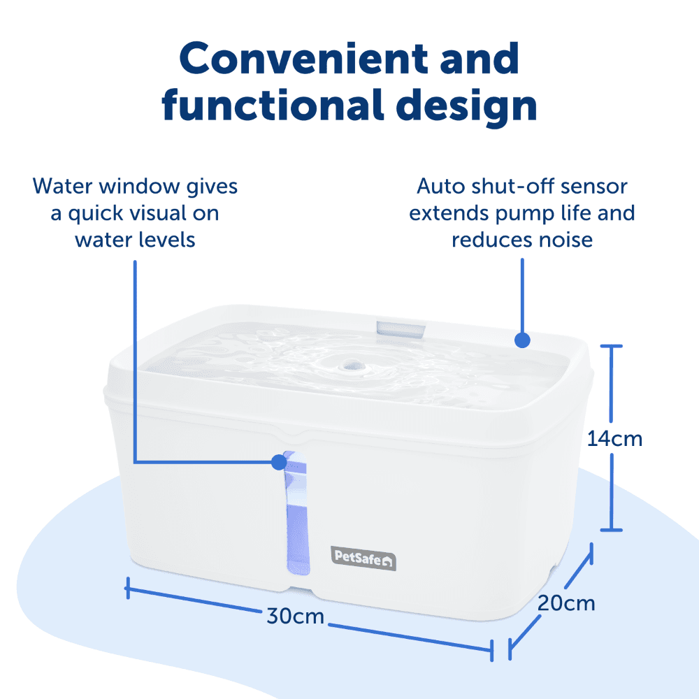 - The 1.8 litre water capacity ensures your pet has access to fresh flowing water all day long without constant refills