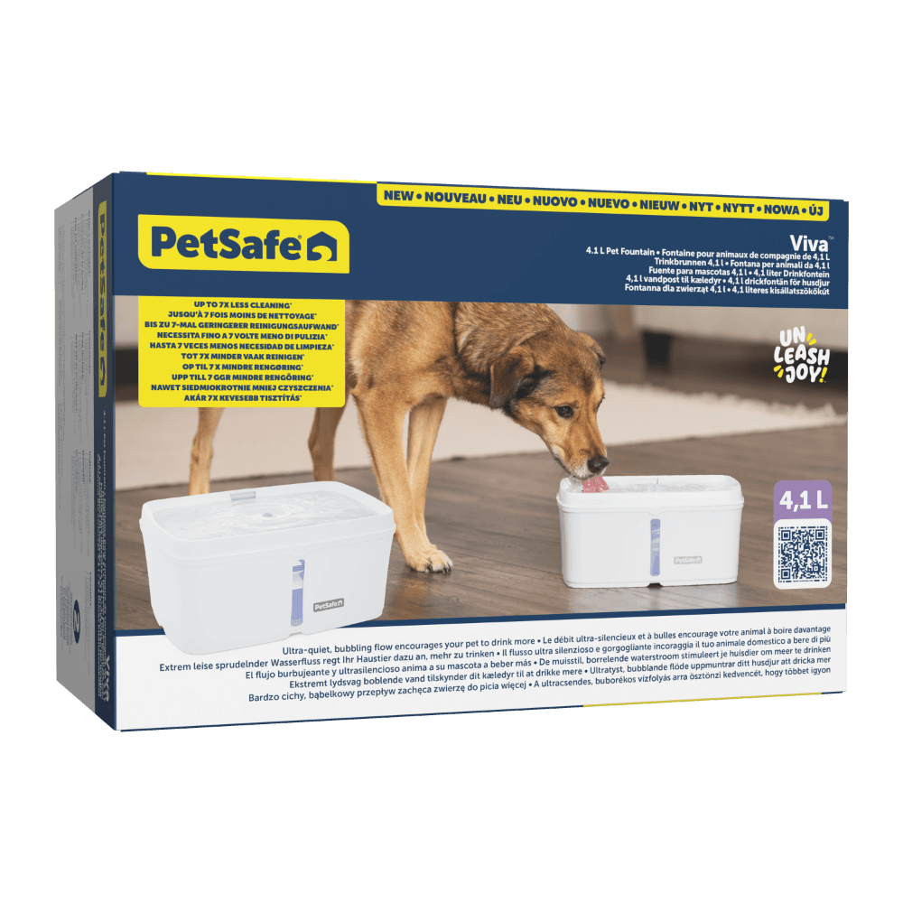 The PetSafe Viva Pet Fountain provides a constant stream of fresh, aerated water to encourage your pet to stay hydrated throughout the day. This innovative fountain utilizes a dual-filtration system to remove debris and odours, ensuring the water remains clean and appealing for your cat or small dog.