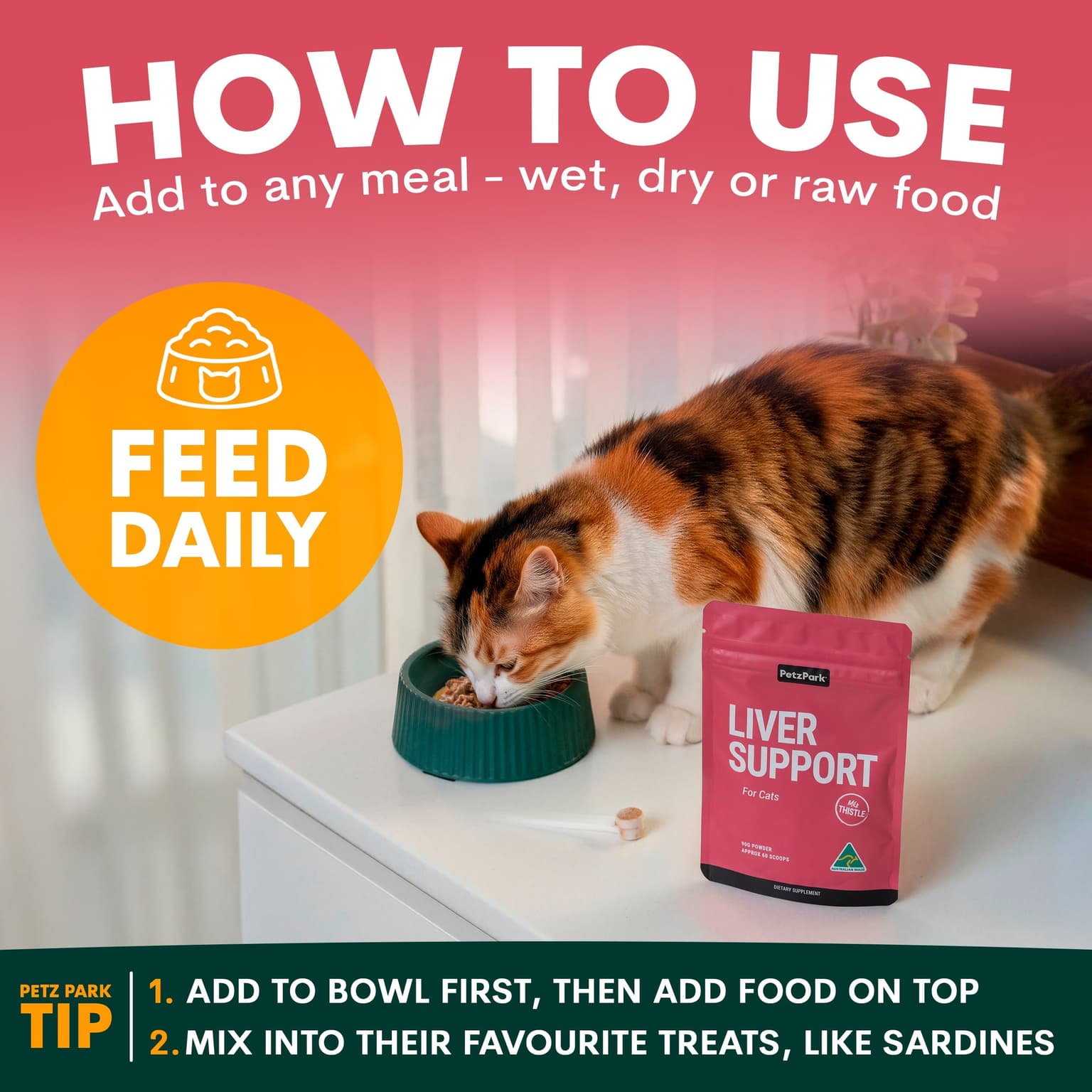Petz Park Liver Support for Cats is the perfect solution to help maintain your cat's liver health, especially if they show signs of fatigue, loss of appetite, or a yellow tinge. This grain-free, easy-to-use supplement detoxifies, protects, and regenerates liver cells, packed with powerful ingredients like beetroot powder and natural antioxidants to support your furry friend's well-being. Made with no fillers, no preservatives, and only natural ingredients, it's simple to use—just sprinkle over or mix into your pet's food, and use multiple PetzPark supplements together for optimal support.