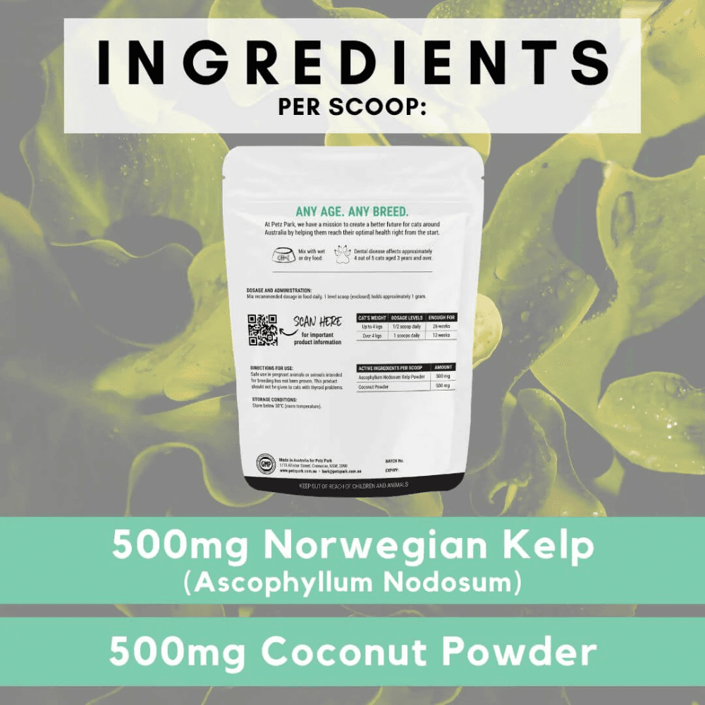 Ingredients Per Scoop - Norwegian Kelp (Ascophyllum Nodosum) 500mg, Coconut Powder 500mg.
