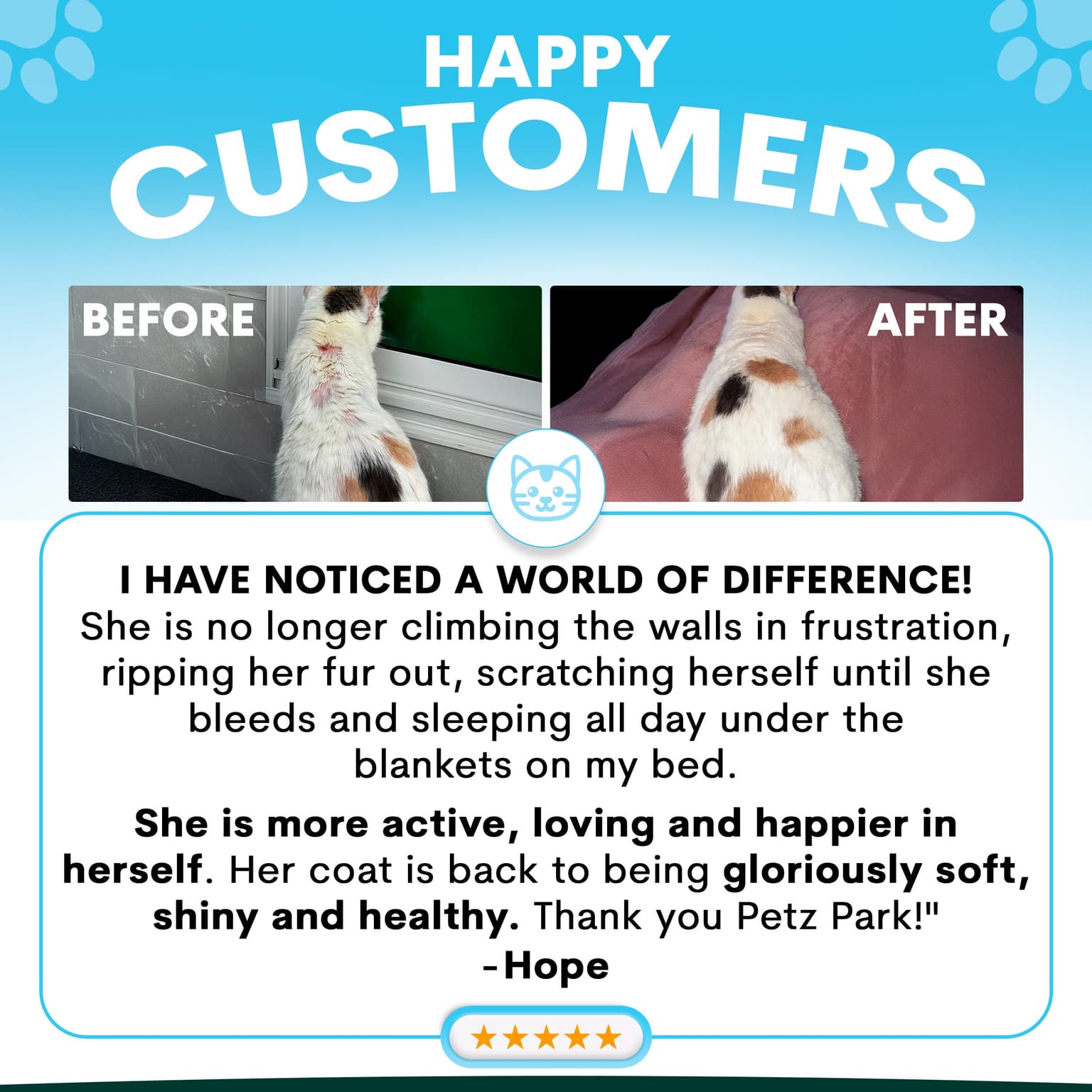 Petz Park Skin and Coat for Cats is a powdered supplement formulated with Omega-3 fatty acids including EPA and DHA to enhance skin and coat health. This supplement promotes brain development, fortifies the immune system, and supports heart function, making it an ideal solution for cats dealing with skin issues like hotspots, external allergies, or excessive shedding. Made with no fillers, no preservatives, and only natural ingredients, it is simple to use. Just sprinkle over or mix into your pet's food and use multiple PetzPark supplements together for optimal support.