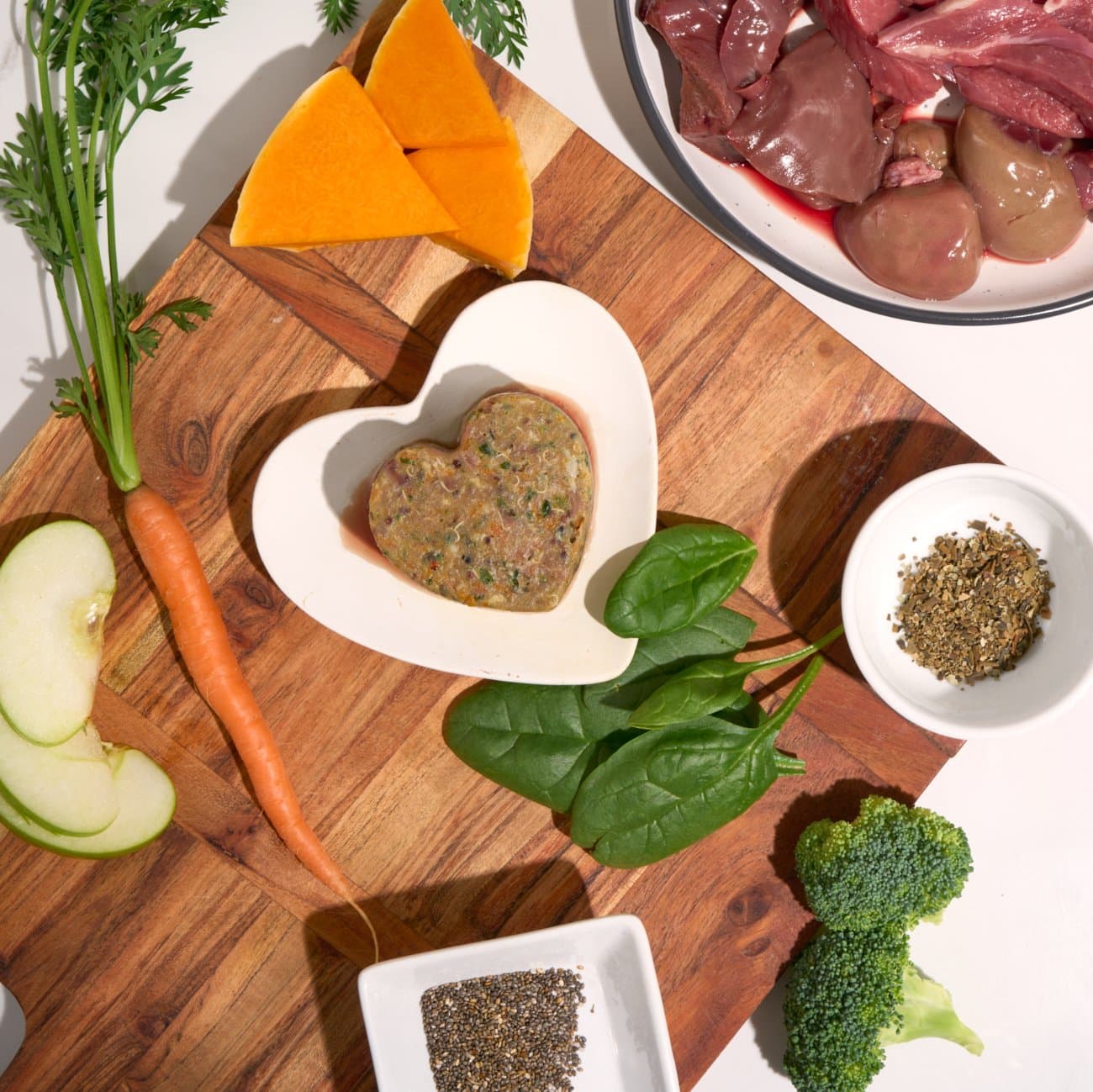 Grass Fed Lamb (85% Lean), Potato, Quinoa, Pumpkin, Lamb Heart, Lamb Kidney, Lamb Liver, Carrot, Broccoli, Baby Spinach, Vitamins And Minerals, Apple, Green-Lipped Mussel, Mint, Atlantic Kelp
