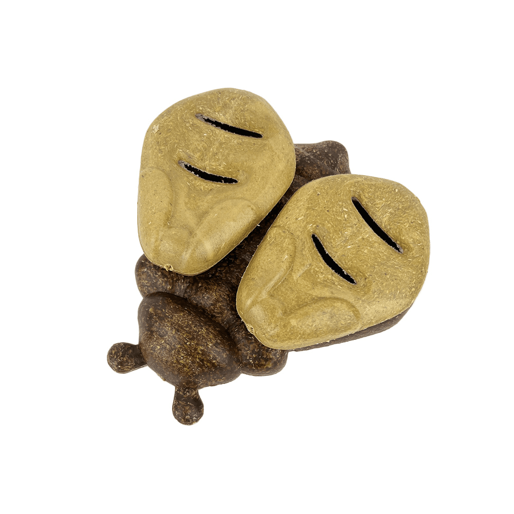 - Features a fun bee design with wings that open to reveal shallow dishes for hiding treats