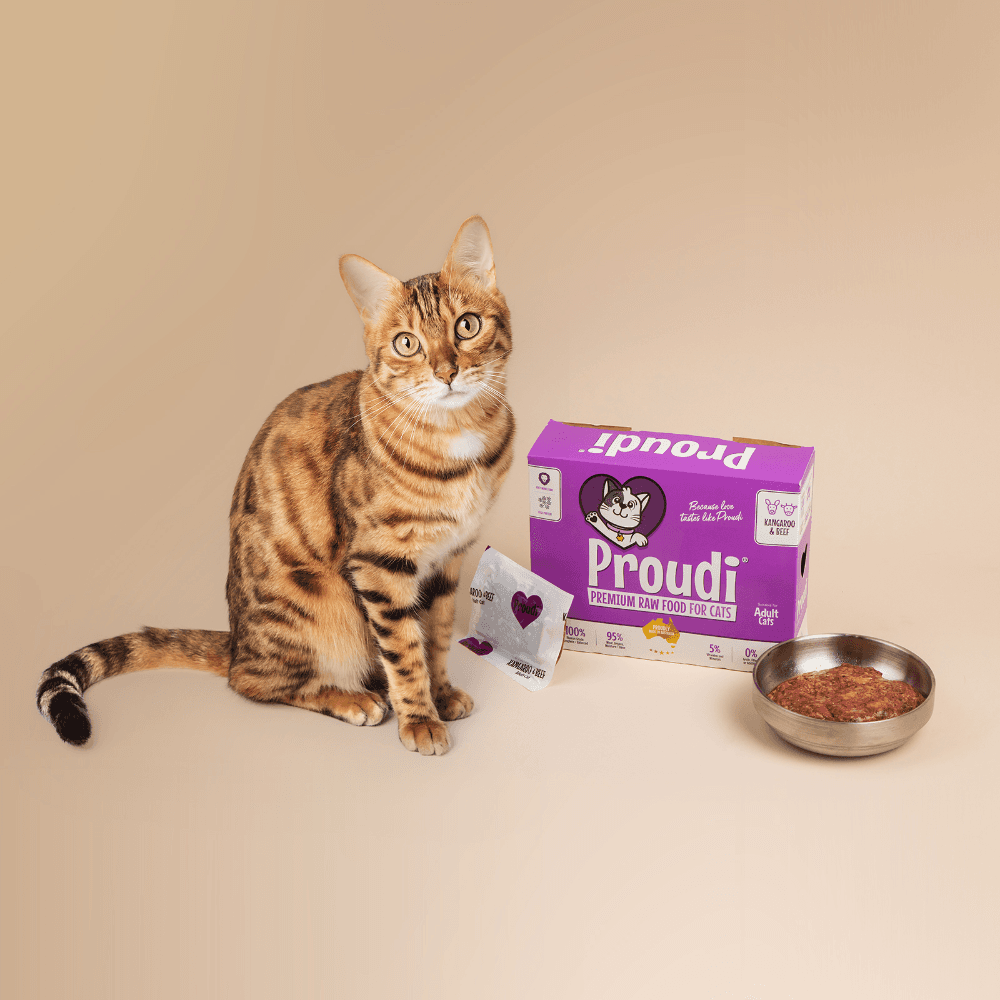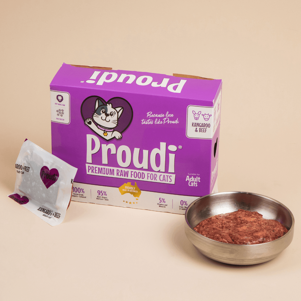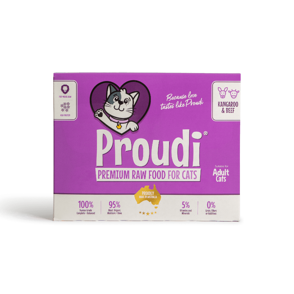 Proudi Premium Raw Kangaroo and Beef Patties for Cats are a complete and balanced meal that is ideal for every couch carnivore. This formula offers the highest protein and lowest fat content in the Proudi range, making it a perfect choice for cats looking to lose weight or boost their overall fitness.