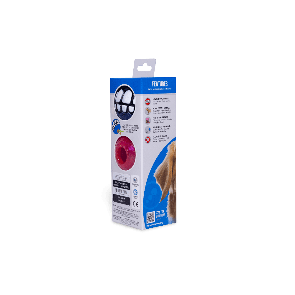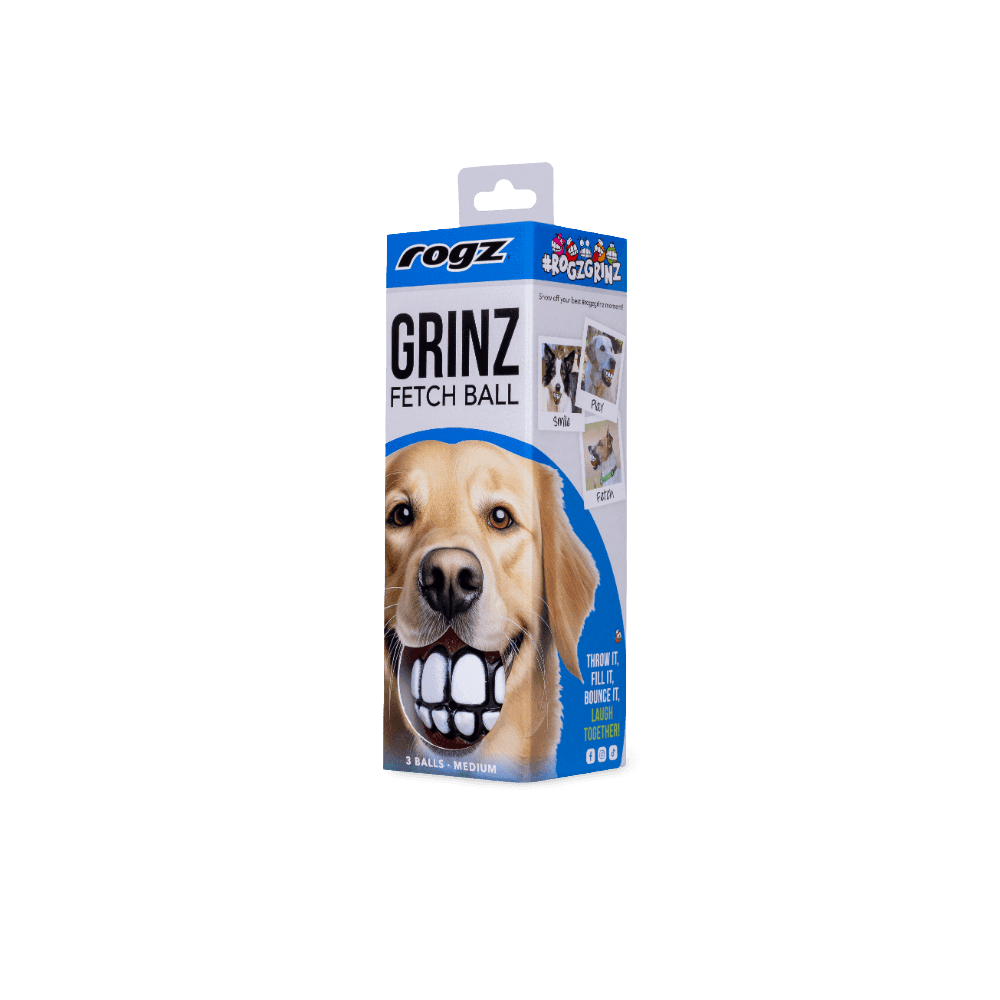 Rogz Grinz Ball is the ultimate playtime companion for dogs, combining bouncing fun, treat rewards, and a cheeky grin! Made from durable, pet-safe TPR material, it's soft on teeth, firm enough to bounce, and even floats on water, making it perfect for fetch games on land or in the pool.